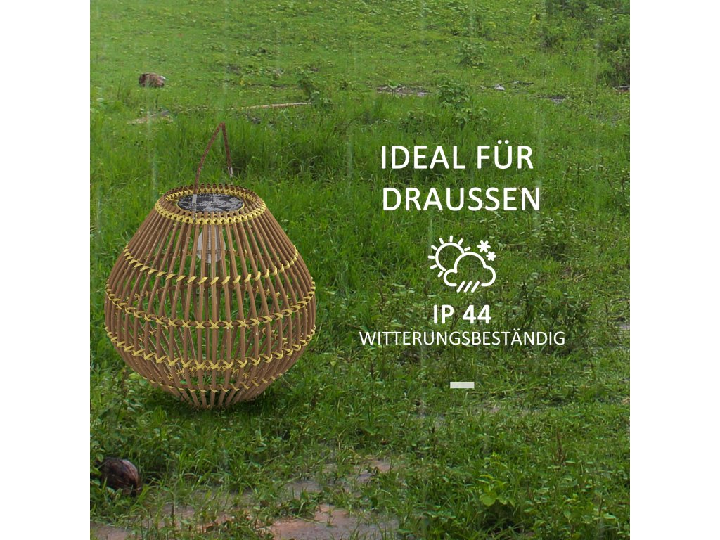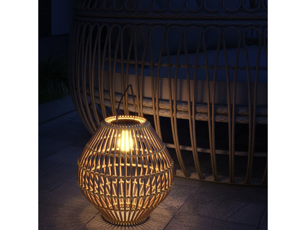 - Vhodné pro venkovní použití: Naše venkovní ratanová stojací lampa je chráněna kovovým rámem s práškovým nástřikem, který v sobě ukrývá ručně tkaný půvab klasického ratanu a je odolný vůči UV záření a povětrnostním vlivům. Tyto materiály společně zajišťují stupeň krytí IP44