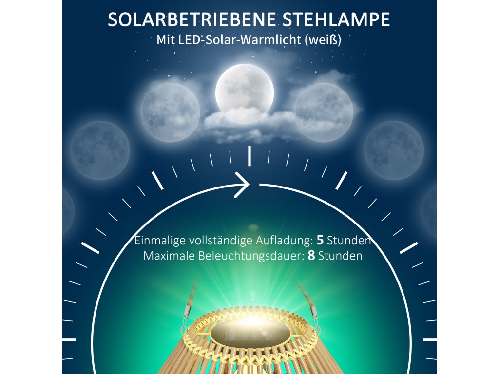 Společnost Outsunny nabízí vodotěsnou venkovní lampu, která osvětlí vaši verandu, terasu nebo cestu. Energeticky úsporné řešení, které můžete nastavit a zapomenout: Nabíjí se na slunci a zapne se, když se setmí. Součástí balení je elegantní stínítko z PE ratanu, které vytváří zábavné stínové vzory. Pro večerní procházky po zahradě nebo venkovní posezení. Rozsviťte si noc s Outsunny.