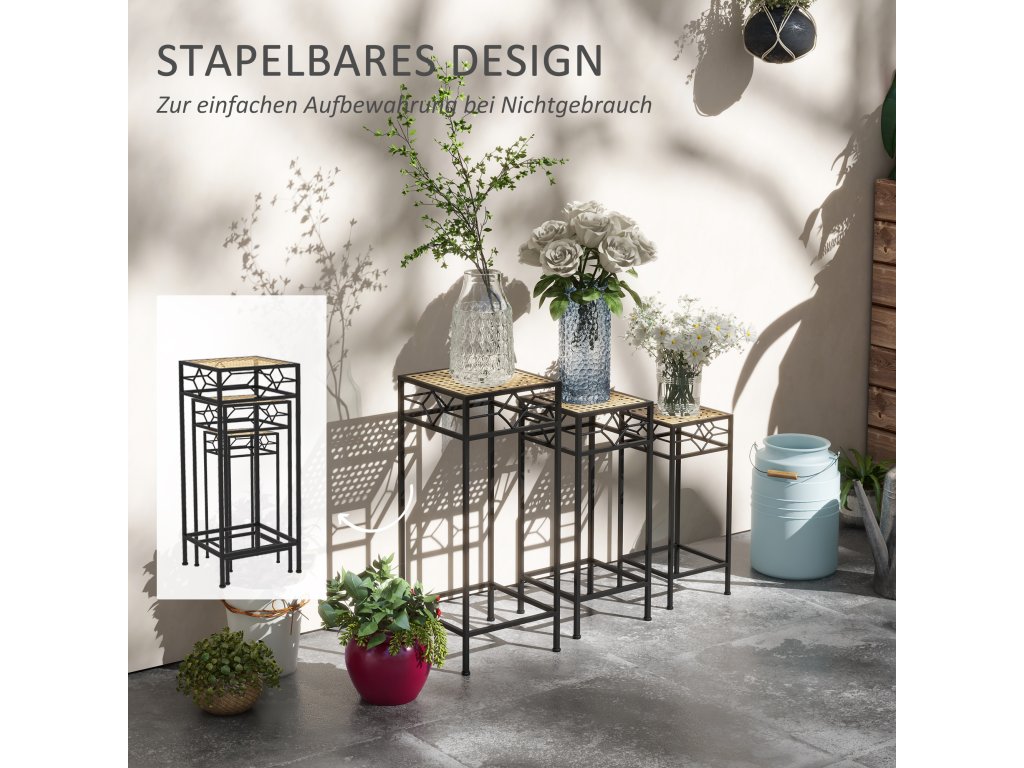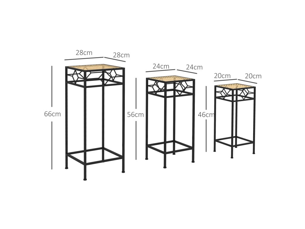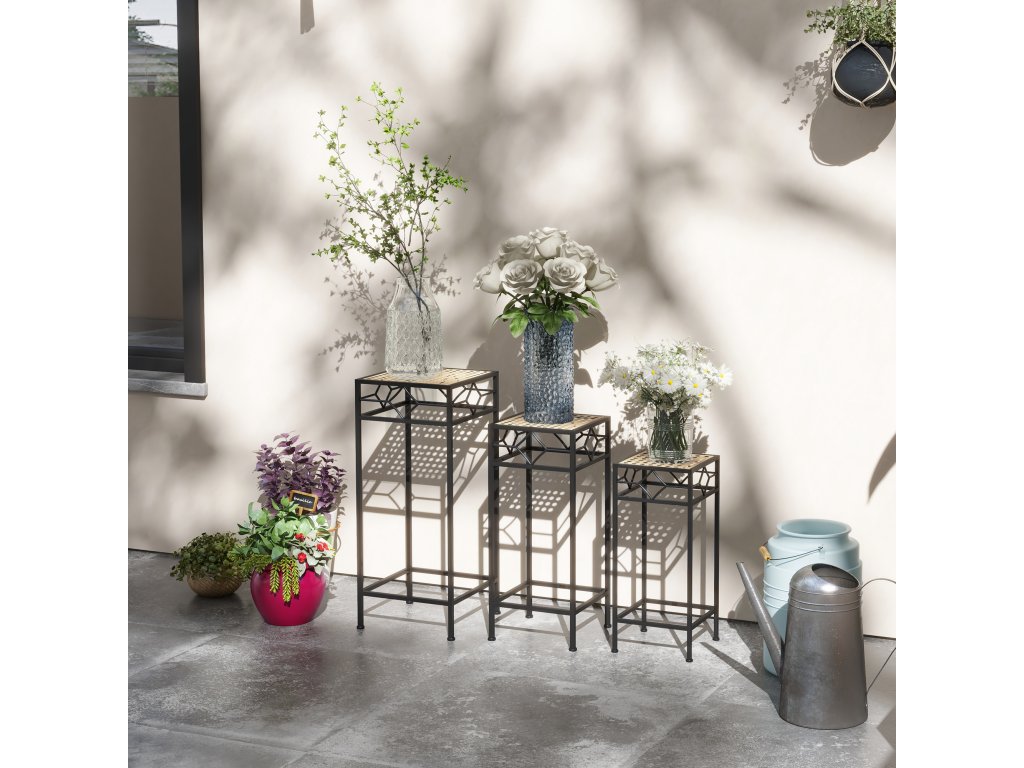 Tato sada stojanů na rostliny Outsunny dodá vašemu domovu krásný a živý nádech. Stojany na květiny jsou k dispozici ve třech různých velikostech a díky kovovému rámu nabízejí dostatečnou oporu. Stojany můžete použít v harmonické sestavě nebo jednotlivě a dodat tak svému interiéru zelené akcenty. Když jich potřebujete více, lze květináče stohovat a ukládat, abyste ušetřili místo.