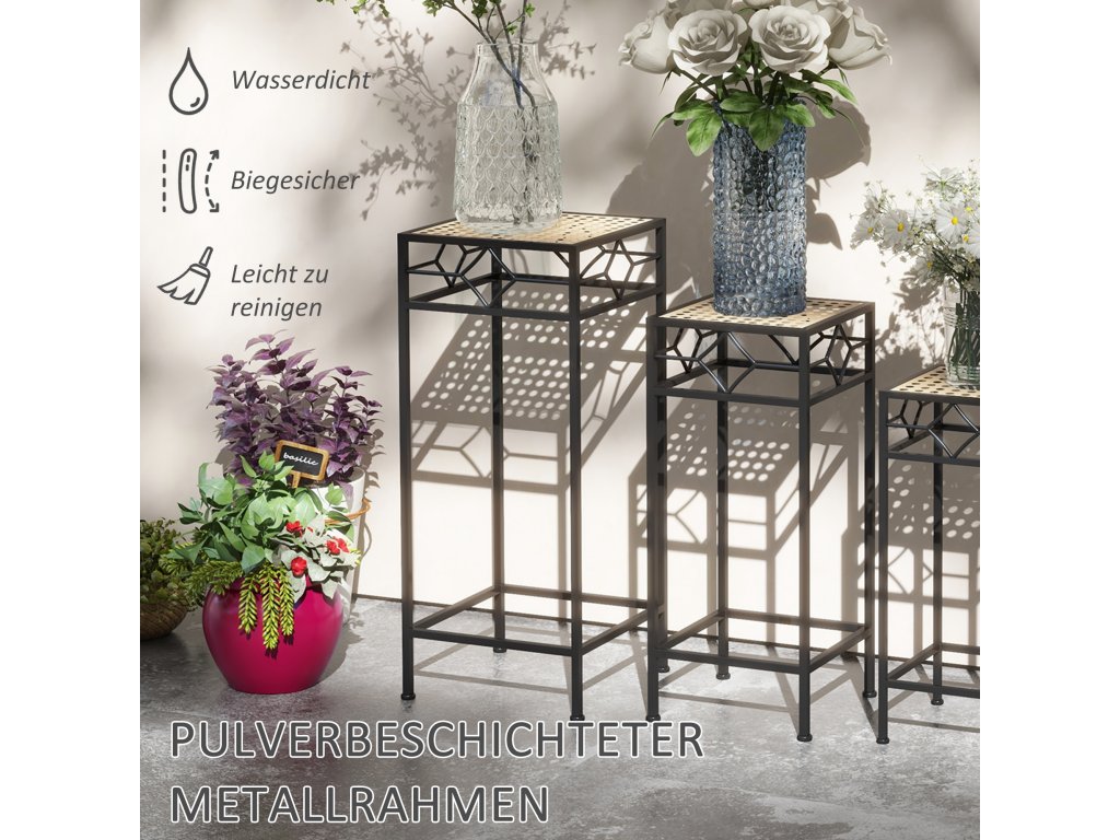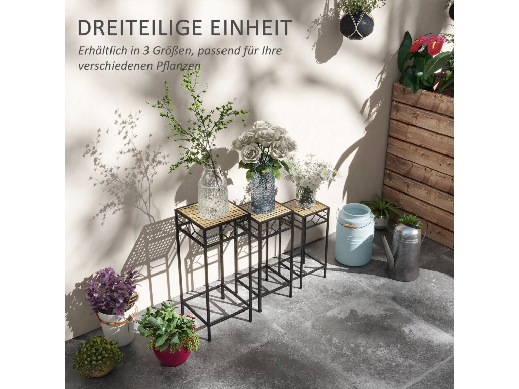Outsunny stojan na rostliny 3-dílný stohovatelný držák na květináč s ratanovým vzhledem pro zahradu balkon kov zlatý | Aosom.de
