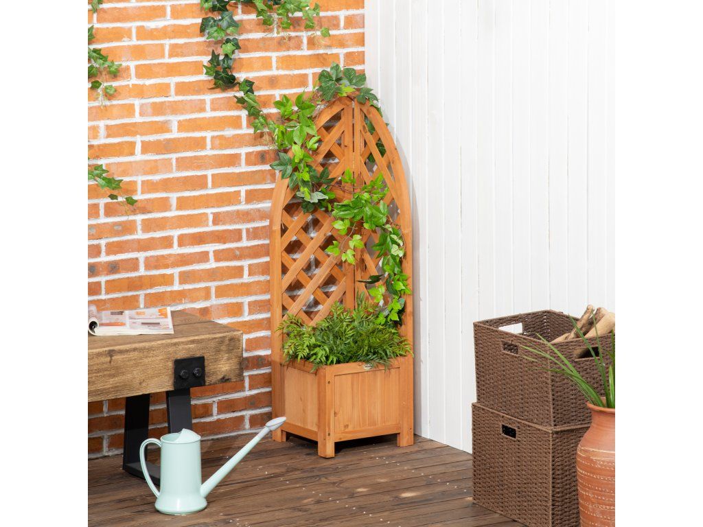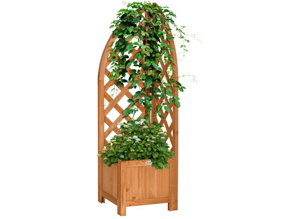 Outsunny truhlík na květiny s podpěrou pro šplhání, pro zahradu, terasu, balkon, přírodní dřevo, hnědý, 32x32x108cm| Aosom