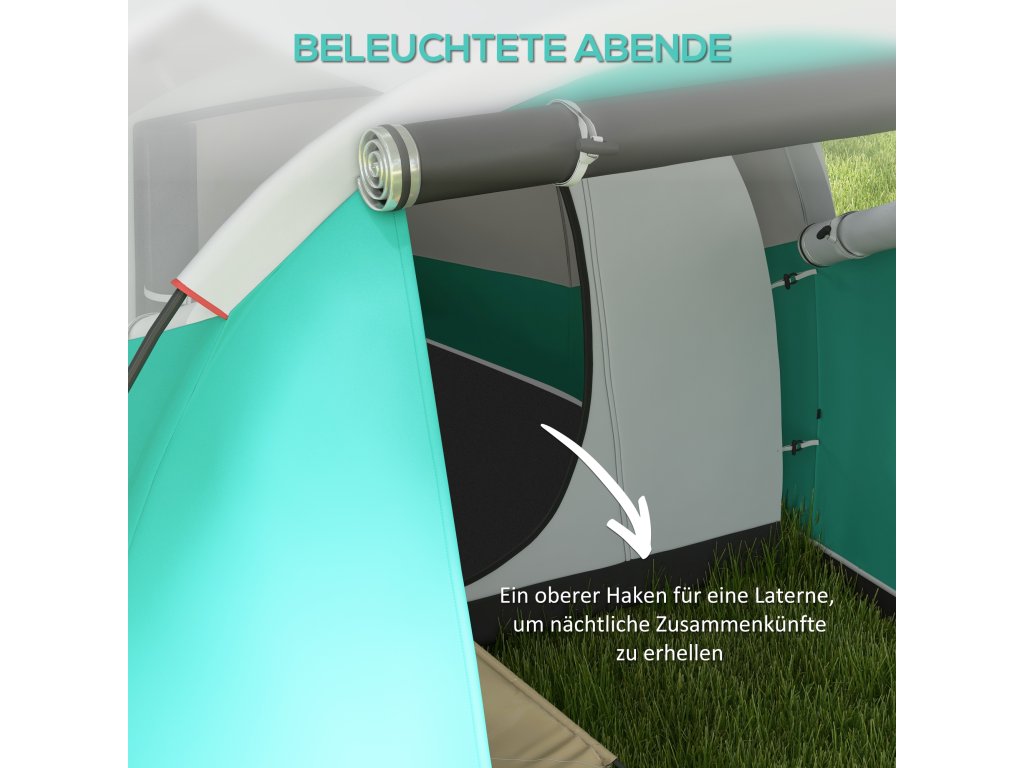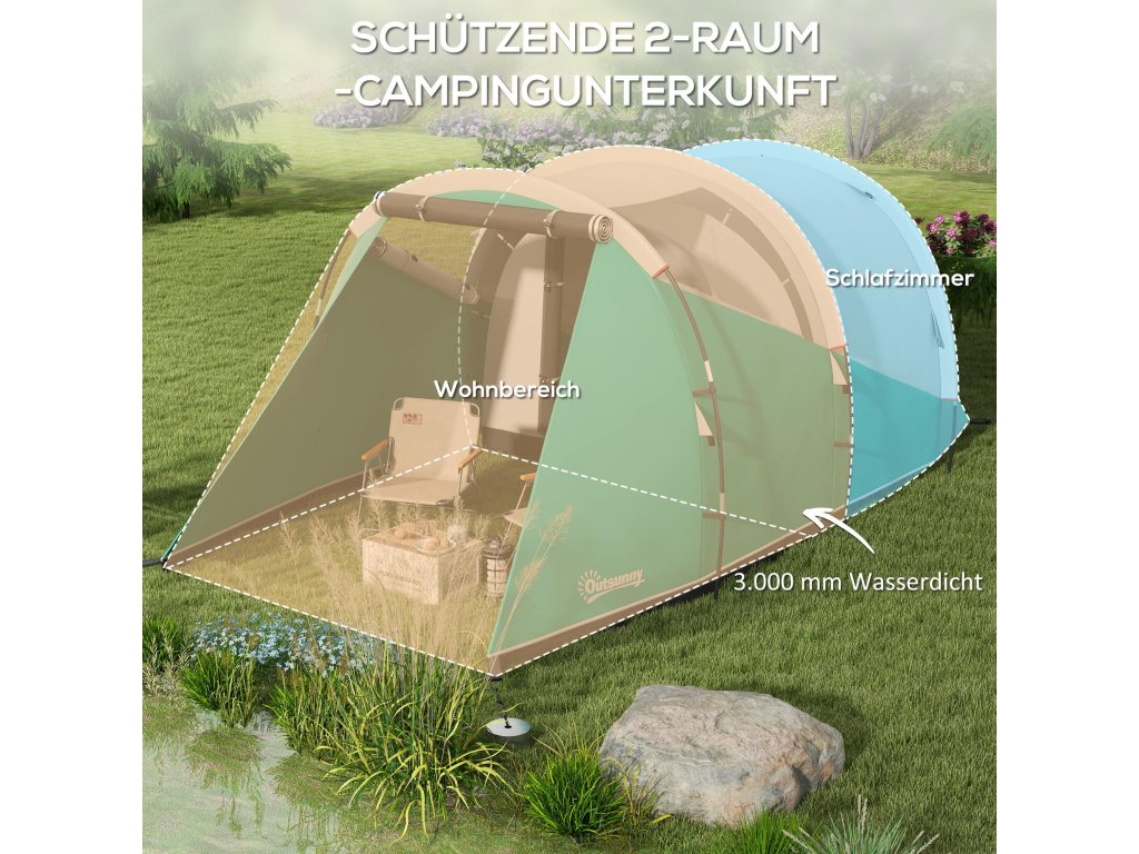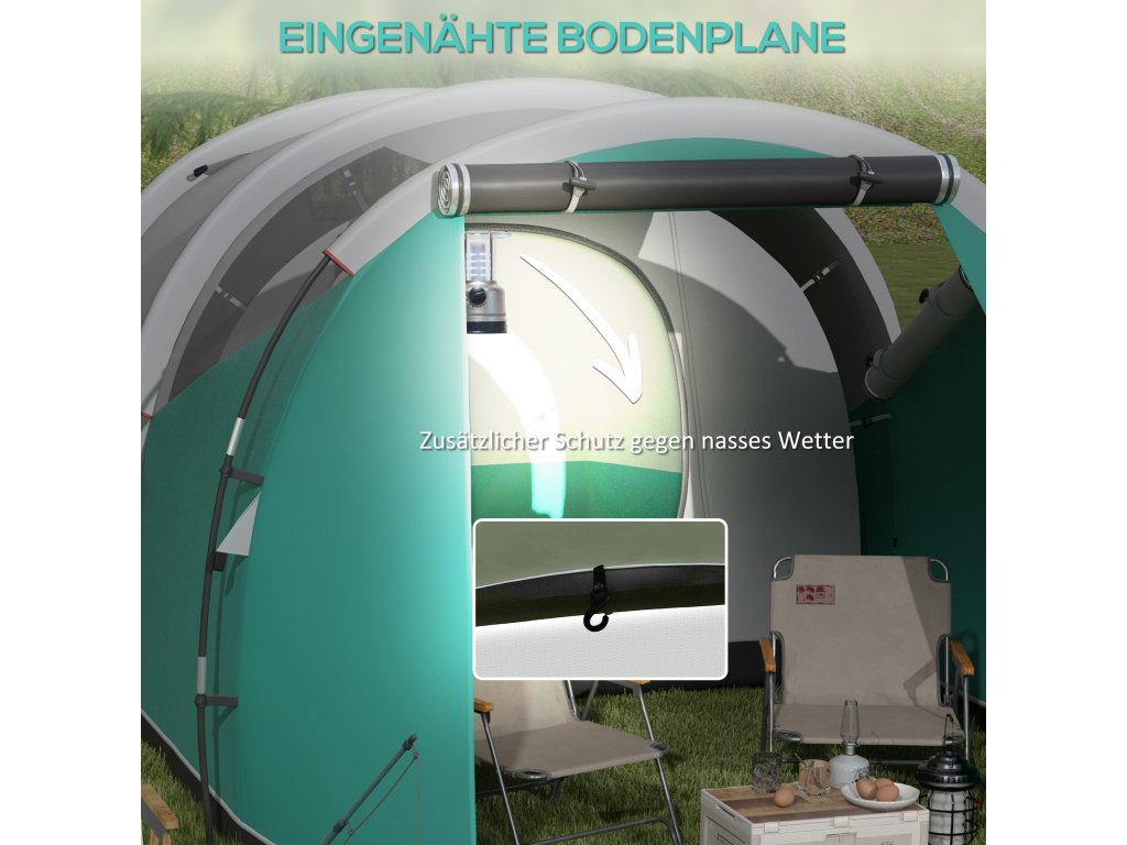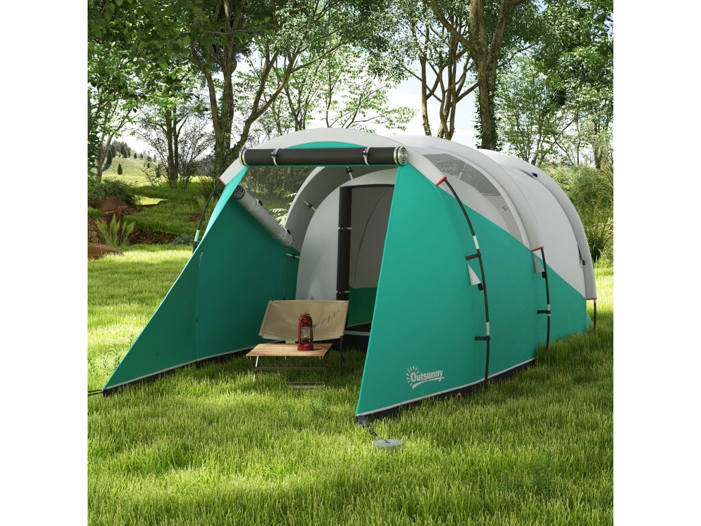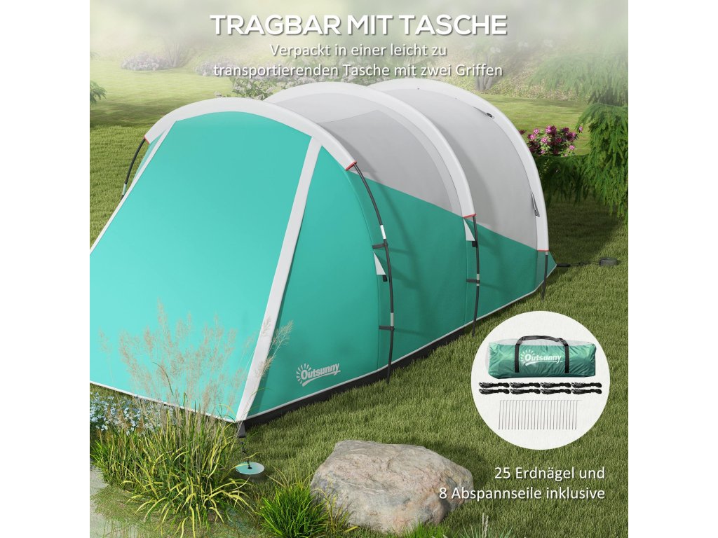 Outsunny tunelový stan kempinkový stan pro 5 osob rodinný stan se 2 místnostmi a přenosnou taškou 3000mm vodní sloupec v zelené barvě na zahradu | Aosom.de