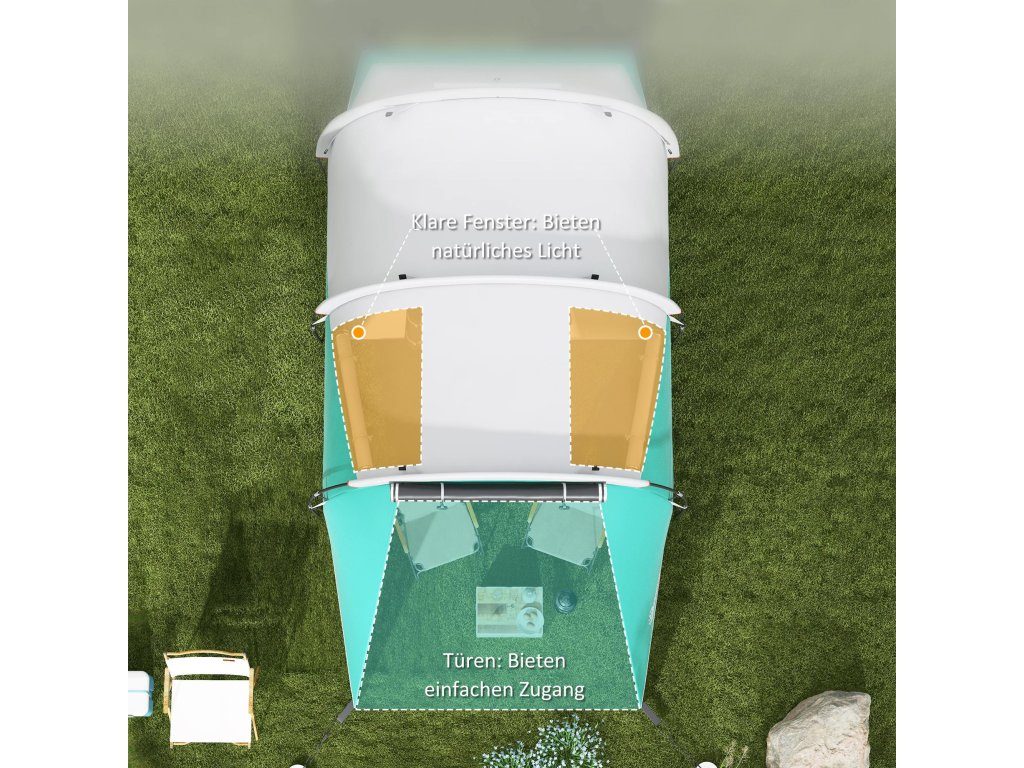 - Světlem zalitý kempinkový stan: Užijte si světlý interiér díky průhledným bočním oknům, která maximalizují světlo a viditelnost, abyste se cítili jako doma, ať jste kdekoli