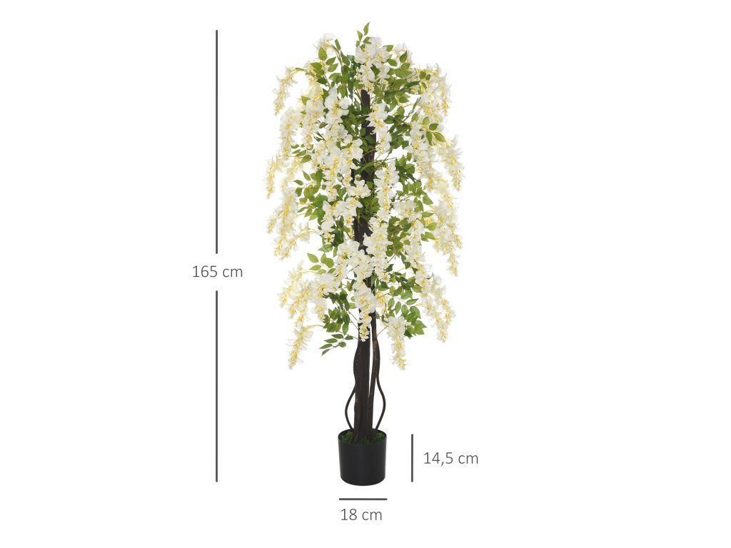 Outsunny umělá rostlina bílá vistárie 165m dekorativní umělé rostliny v květináči plastový cement pro vnitřní a venkovní použití | Aosom.de