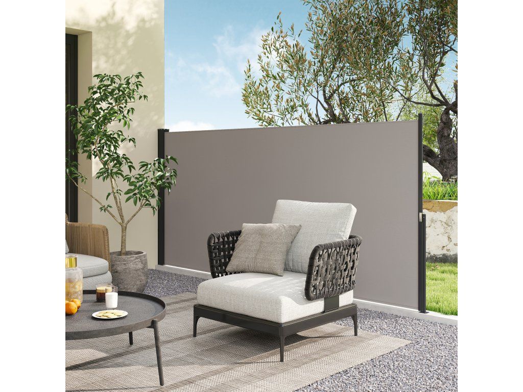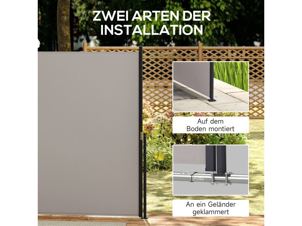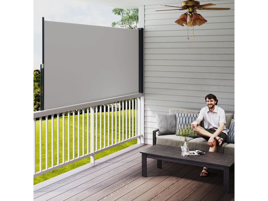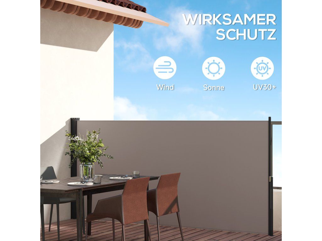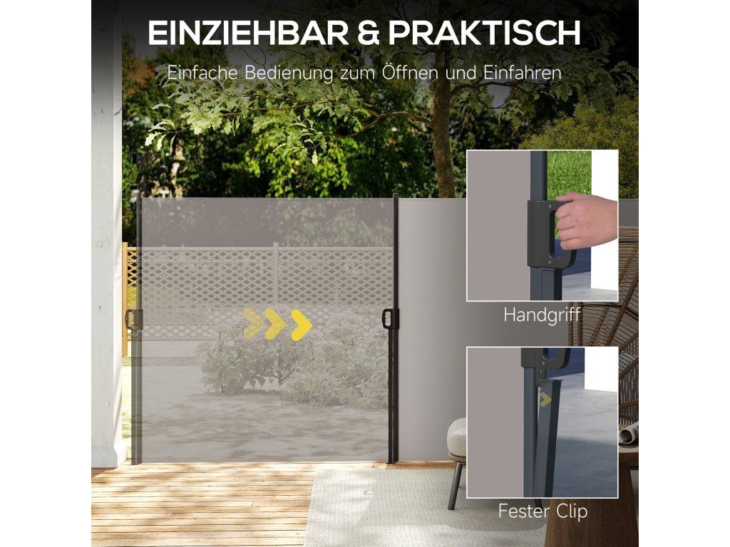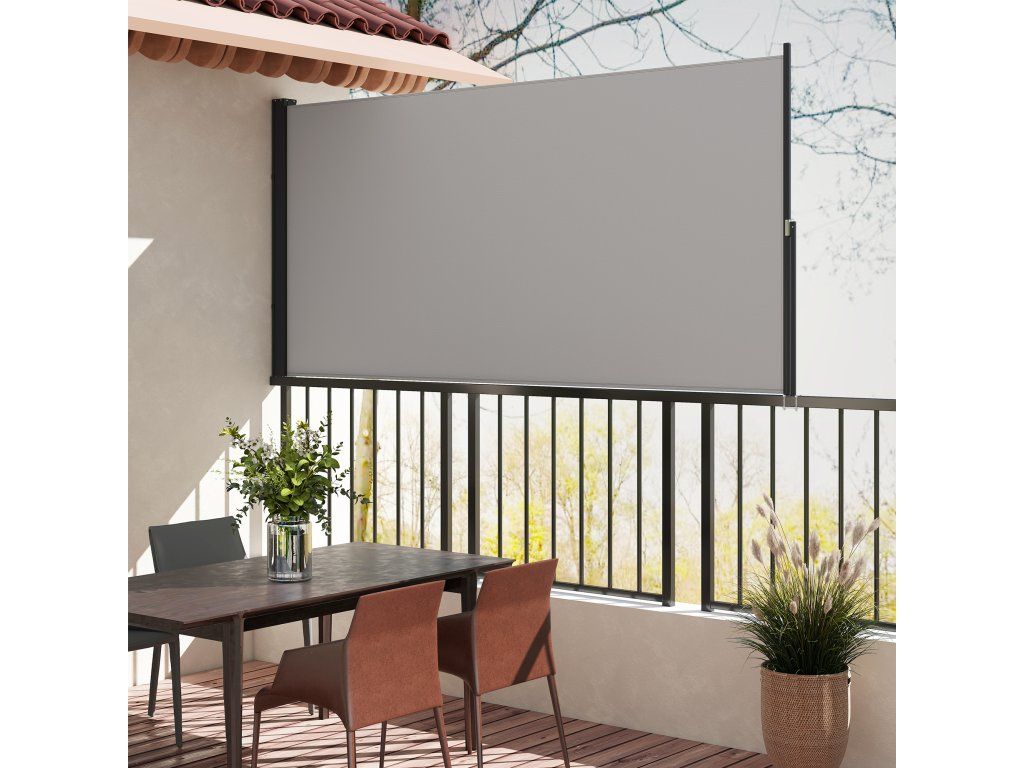 S touto výsuvnou boční roletou od společnosti Outsunny vytvoříte ve svém venkovním prostoru během chvilky stinný relaxační koutek. Robustní kovový rám zaručuje dlouhodobou stabilitu a lze jej snadno připevnit na cement nebo masivní dřevo. Tuto boční markýzu lze snadno vysunout a upevnit pomocí praktické rukojeti a lze ji také použít jako úžasně praktickou zástěnu soukromí v interiéru. Elegantní, nadčasový vzhled šikovně dotváří vyvážený design.