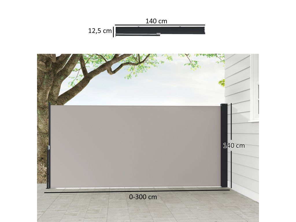 Outsunny výsuvná boční markýza 300 x 140 cm Zahradní markýza s UV ochranou Windbreak Metal Polyester Light Grey | Aosom.de