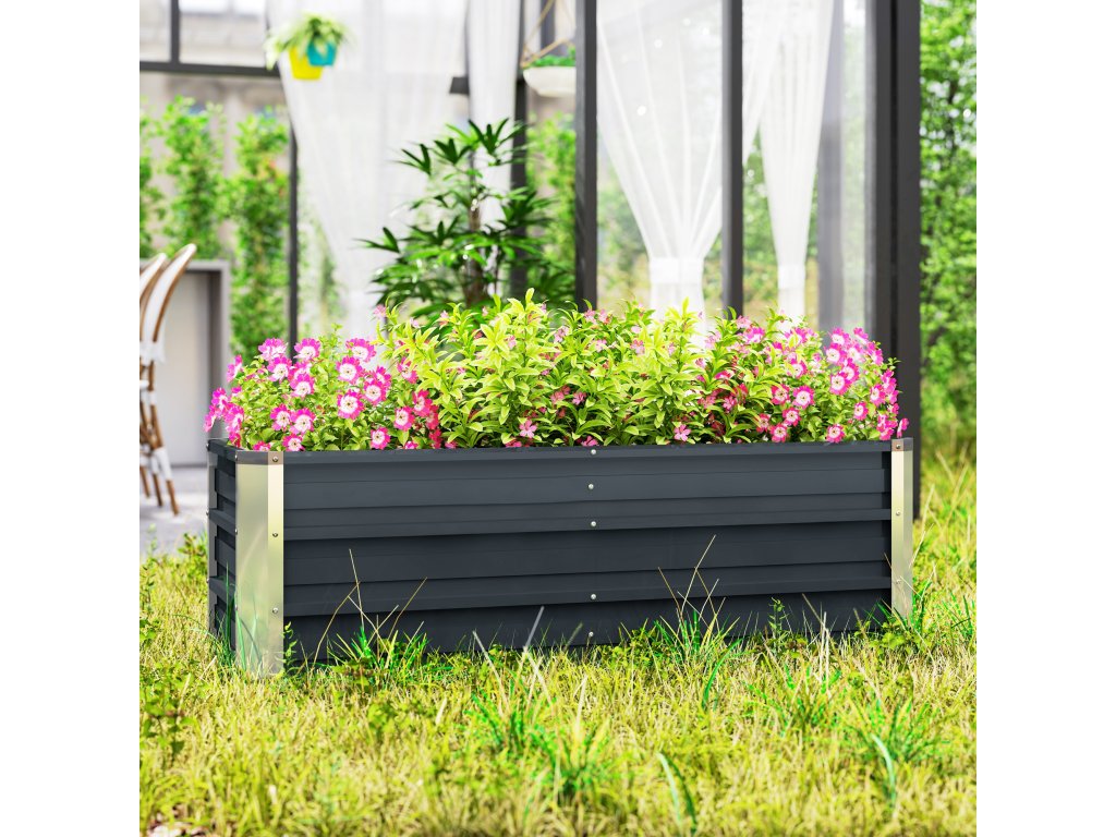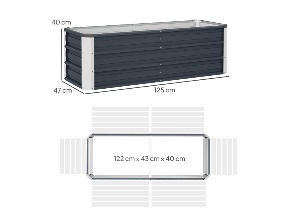 Outsunny vyvýšený ocelový zahradní záhonový truhlík 125x47x40cm uhlíkově šedý včetně rukavic na zeleninu a květiny | Aosom.de