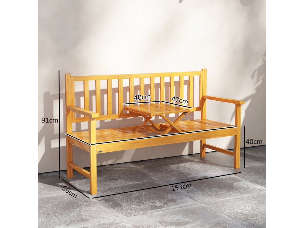 Outsunny zahradní lavice 3místná lavice stůl područka dřevěná lavice do 280 kg balkon terasa světle hnědá 153x56x91cm | Aosom