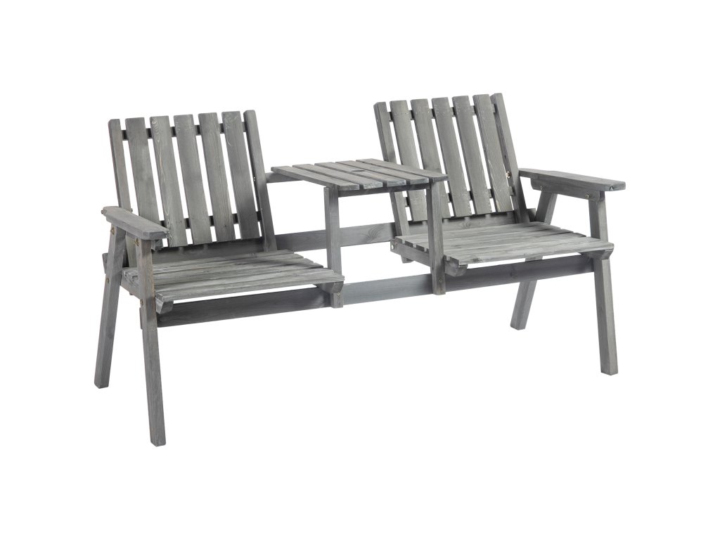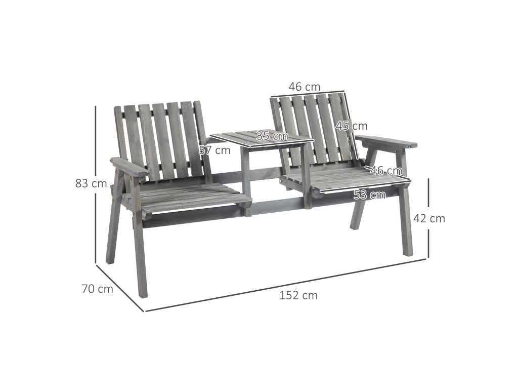 Outsunny zahradní lavice se stolem zahradní nábytek s otvorem pro slunečník 2 židle z masivního dřeva šedé 152 x 70 x 83 cm pro terasu a zahradu |