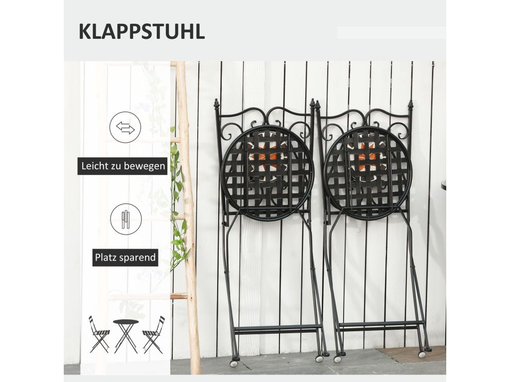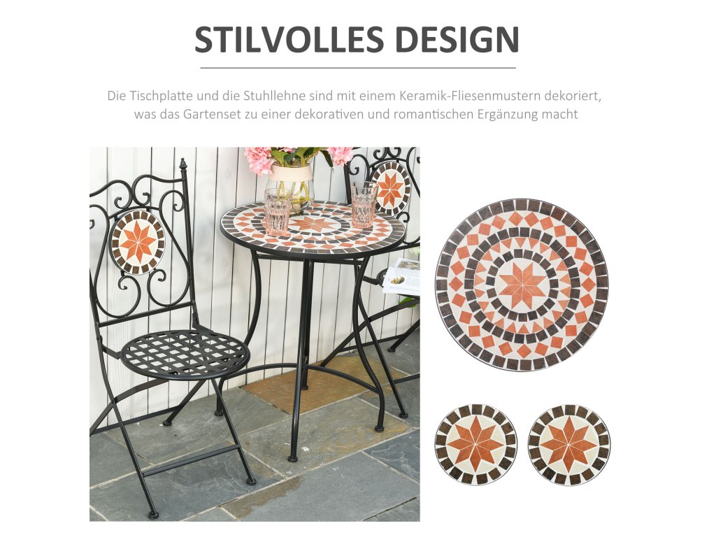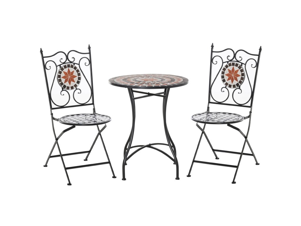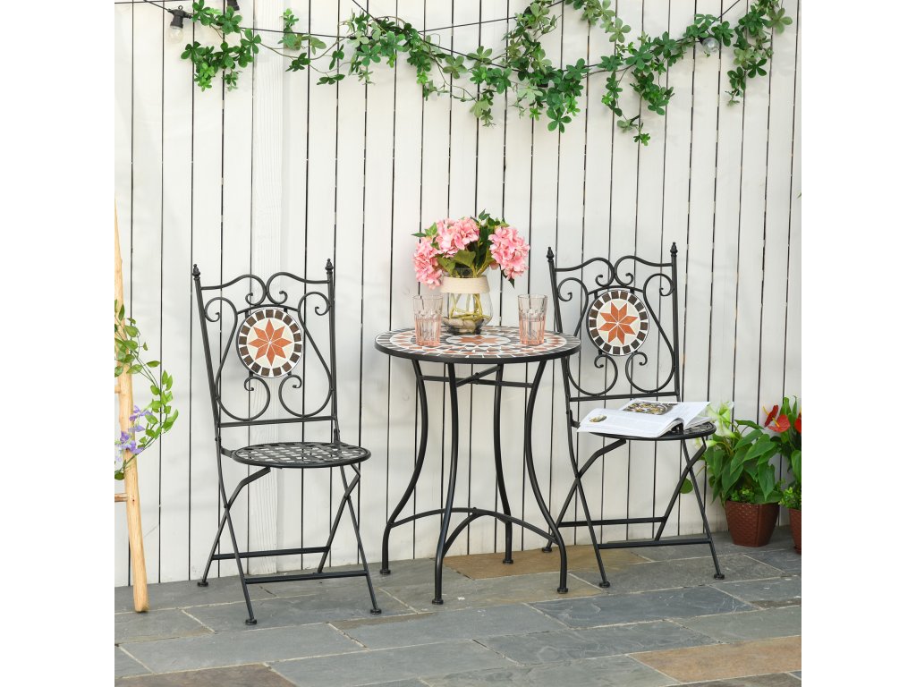 Outsunny zahradní set balkonový nábytek pro 2 osoby s mozaikovým stolem a 2 skládacími kovovými židlemi, vícebarevný pro zahradu a terasu | Aosom.de