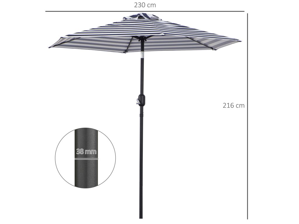 Outsunny zahradní slunečník s ocelovým rámem, modrý pruh, Ø230x216cm, pro venkovní použití| Aosom