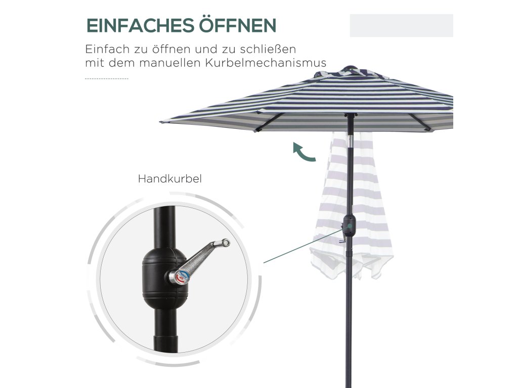 - ✔ Otáčením kličky otevřete a zavřete slunečník během několika vteřin