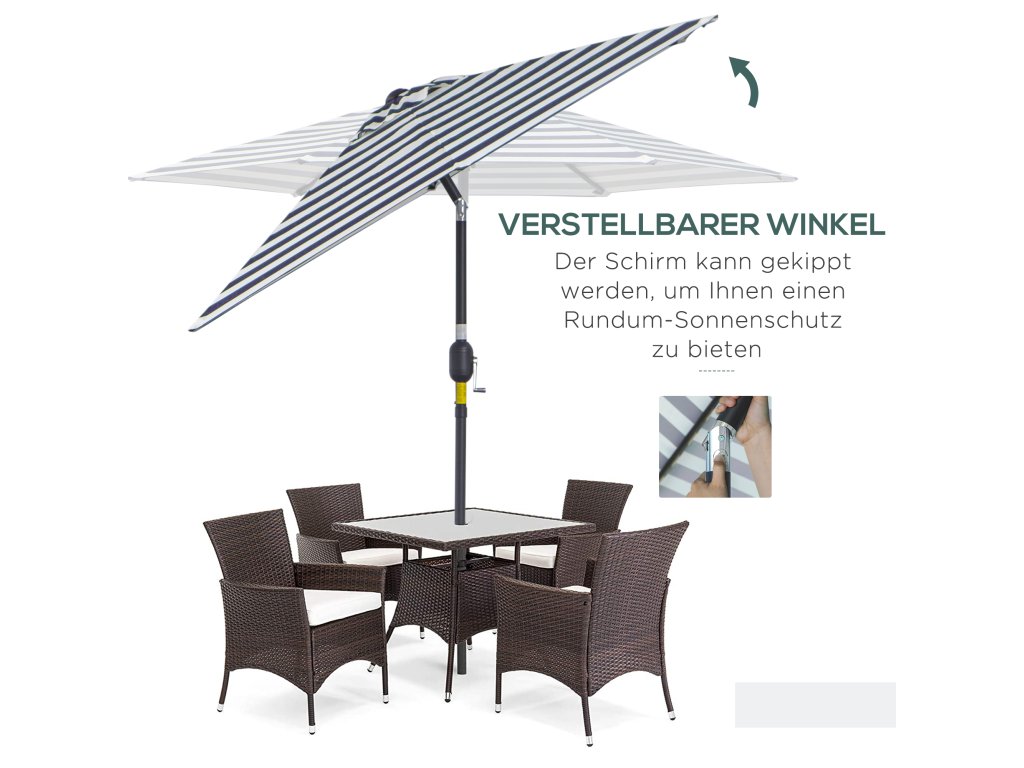 Potřebujete na zahradu, verandu nebo terasu moderní a funkční slunečník? Slunečník Outsunny se vyznačuje nastavitelným úhlem a snadným otevíráním. Tento slunečník byl navržen tak, aby vám poskytl potřebný stín, zatímco si budete užívat venku za slunečného dne. Je vyroben z vysoce kvalitního materiálu, který zaručuje optimální odolnost.