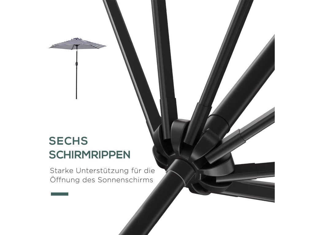 - ROBUSTNÍ A ODOLNÝ: Kovová tyč a 6 kovových žeber zajišťují zvýšenou odolnost tohoto slunečníku, který je vhodný pro dlouhodobé používání. Větrací otvory na horní straně pomáhají zajistit stabilitu ve větrném počasí.