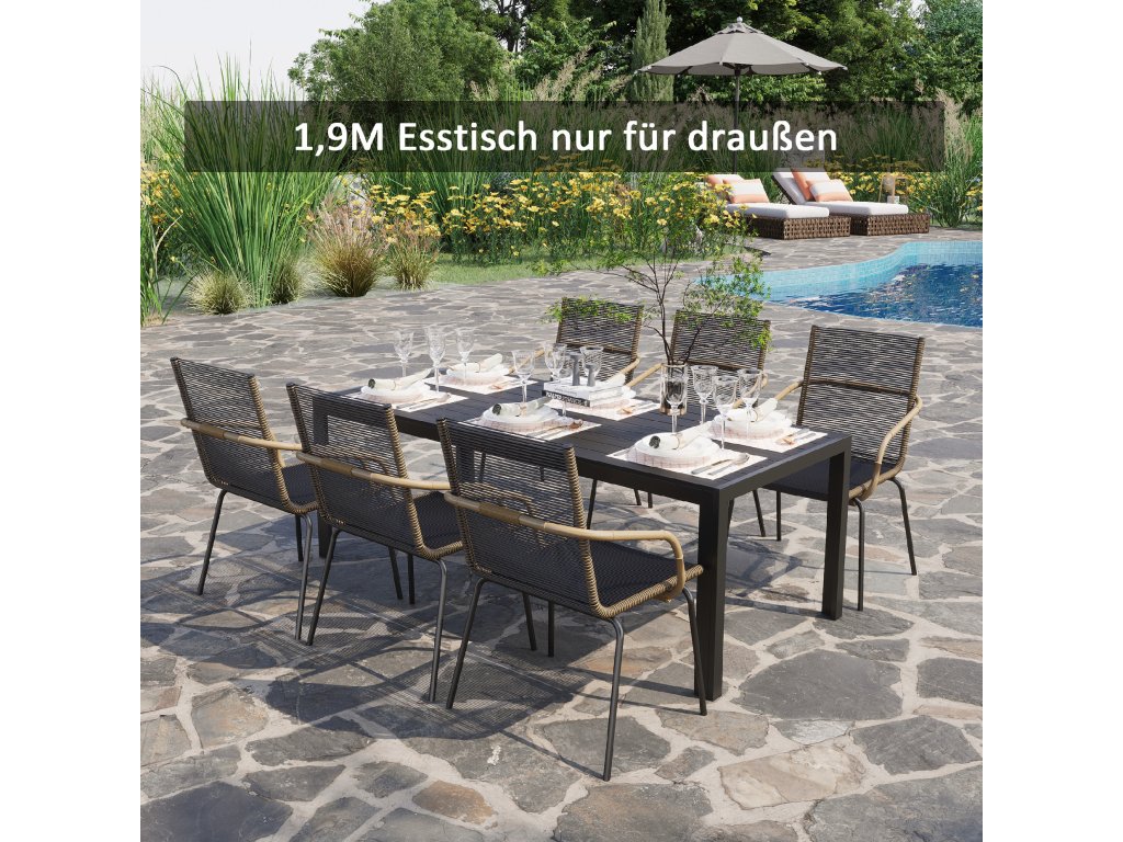 Elegantní balkonový stolek od společnosti Outsunny kombinuje lehkost a stabilitu s módním designem. Ať už jako jídelní stůl v obývacím prostoru, nebo jako stůl na balkoně a terase, vždy vytvoří stylovou atmosféru! Velký stůl na terasu nabízí dostatek prostoru pro vaše hosty a je velmi snadno čistitelný, odolný vůči povětrnostním vlivům a velmi robustní. Ať už se sejdete na grilování s přáteli nebo na kávový dýchánek, s tímto vysoce kvalitním odkládacím stolkem budete vždy dobře vybaveni.