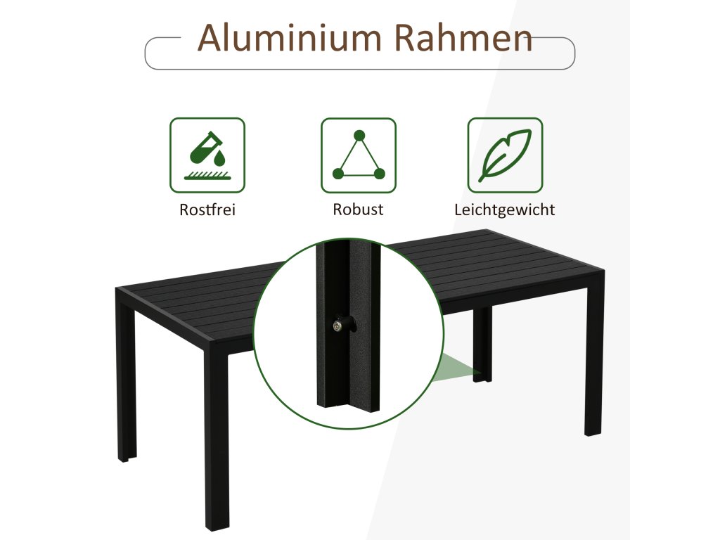 Outsunny zahradní stůl hliníkový stůl 120x70 cm pro zahradní terasu dřevo-plast polywood černý odolný proti povětrnostním vlivům a moderní | Aosom.de
