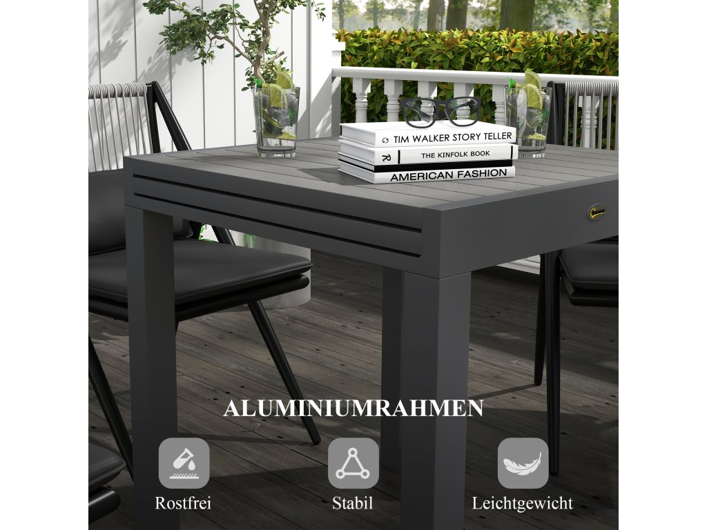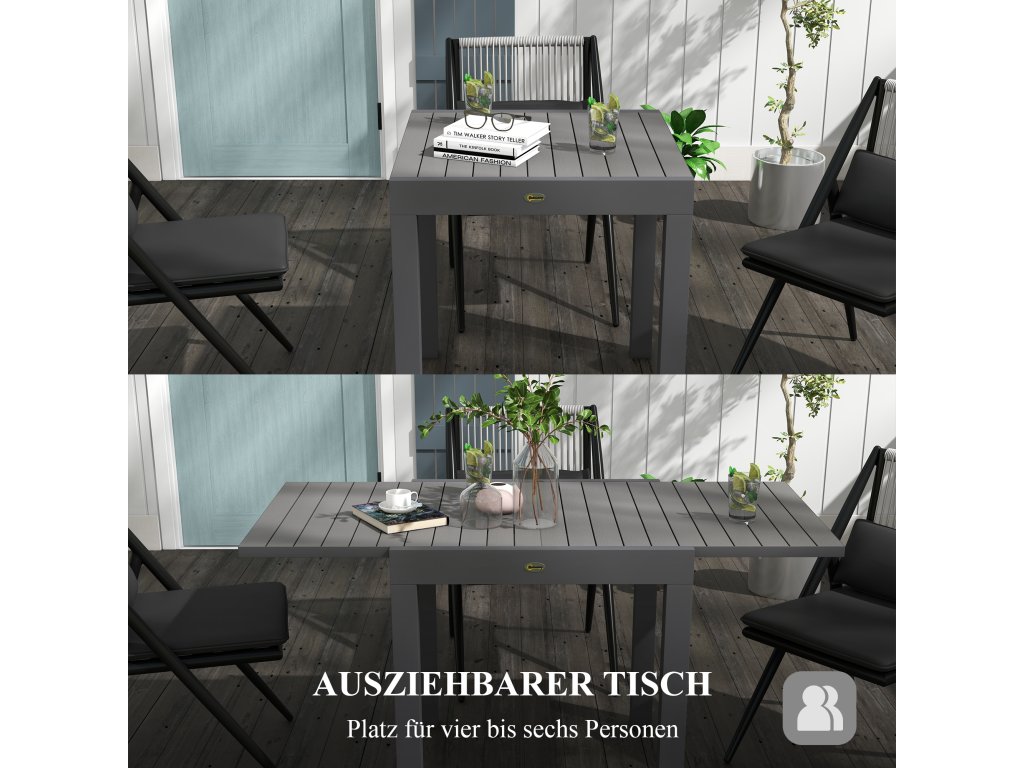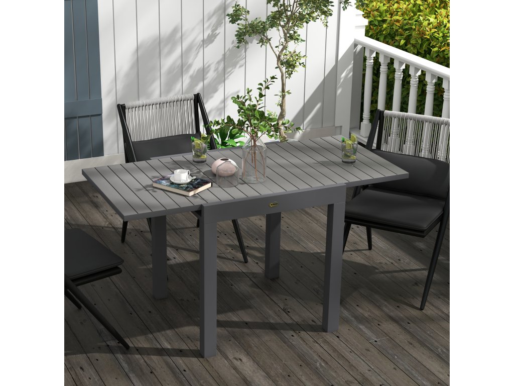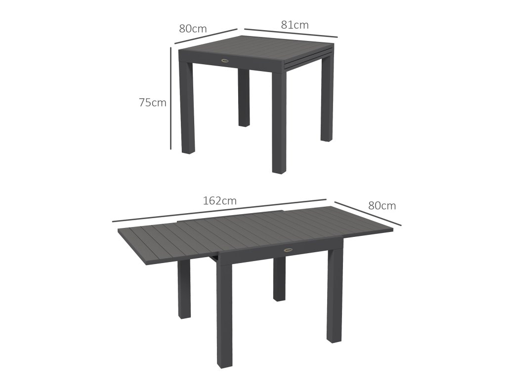 Outsunny zahradní stůl jídelní stůl pro 6 osob, rozkládací stůl na terasu do 70 kg, hliníková šedá 81/162 x 80 x 75 cm pro balkon a zahradu | Aosom.de