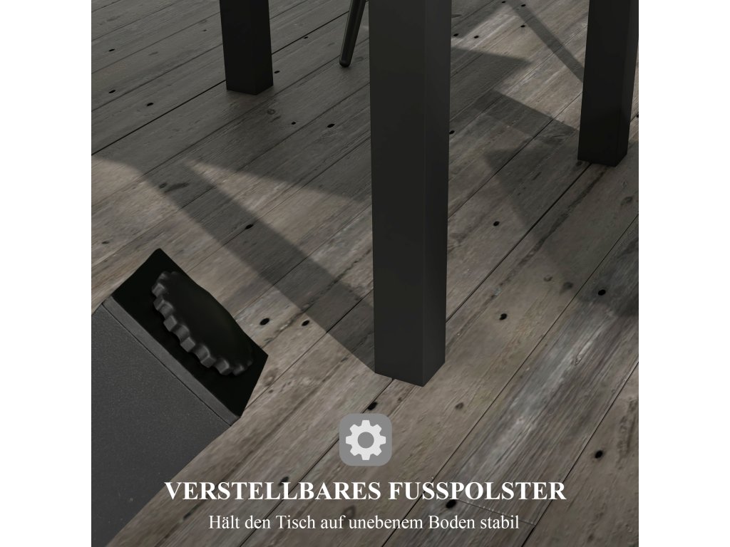 - ✔ Stabilita na nerovném terénu díky nastavitelným opěrkám nohou balkonového stolu
