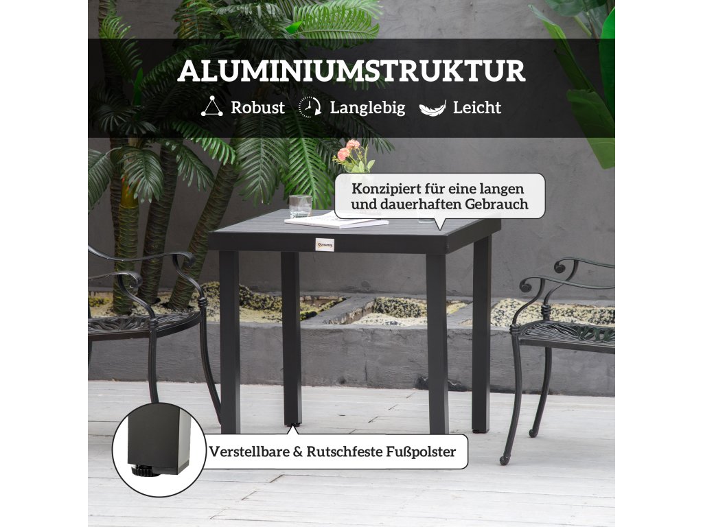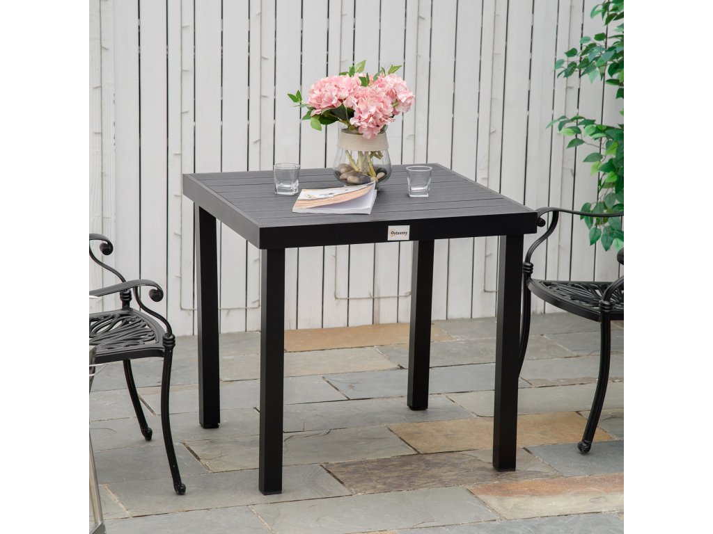 Outsunny zahradní stůl pro 4 osoby kompaktní jídelní stůl ze snadno udržovatelného hliníkového plastu černý 80x80x74cm pro zahradní nábytek | Aosom.de