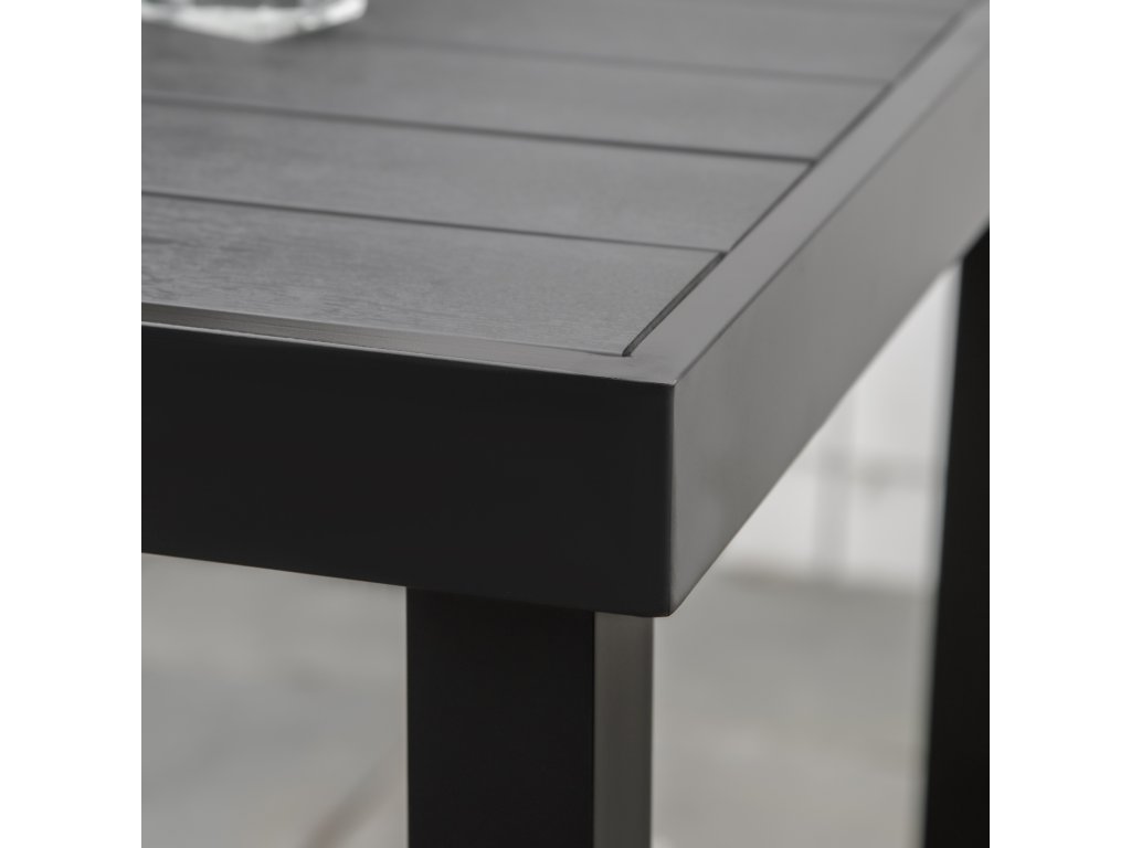 - DŘEVĚNÁ DESKA STOLU: Plastové lamely na desce stolu imitují dřevo, jsou však robustnější a odolnější. Po dešti navíc rychle schne a snadno se čistí vlhkým hadříkem.