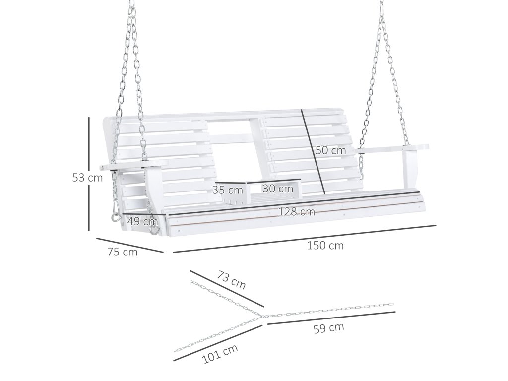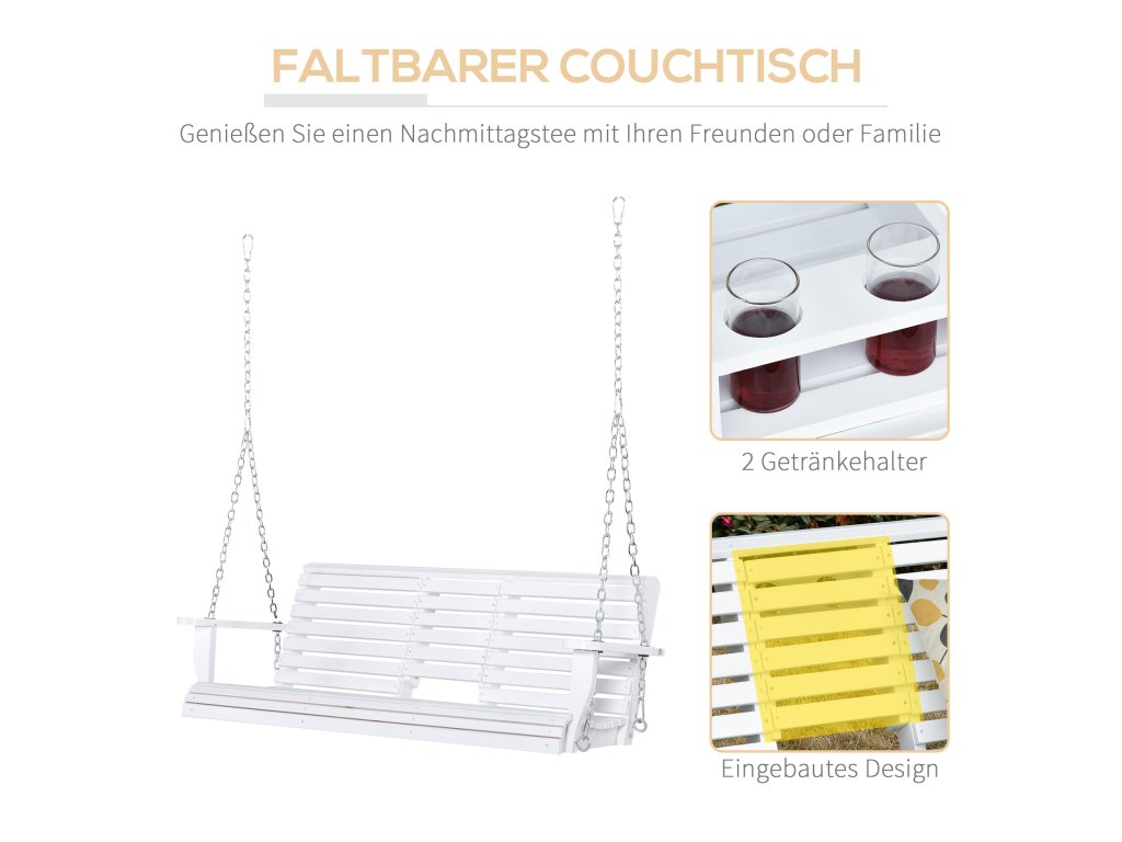 Outsunny závěsná lavice zahradní houpačka houpací lavice se skládacím stolkem pro 2-3 osoby jedlové dřevo pohodlná terasa 150 x 75 x 53 cm Bílá | Aosom