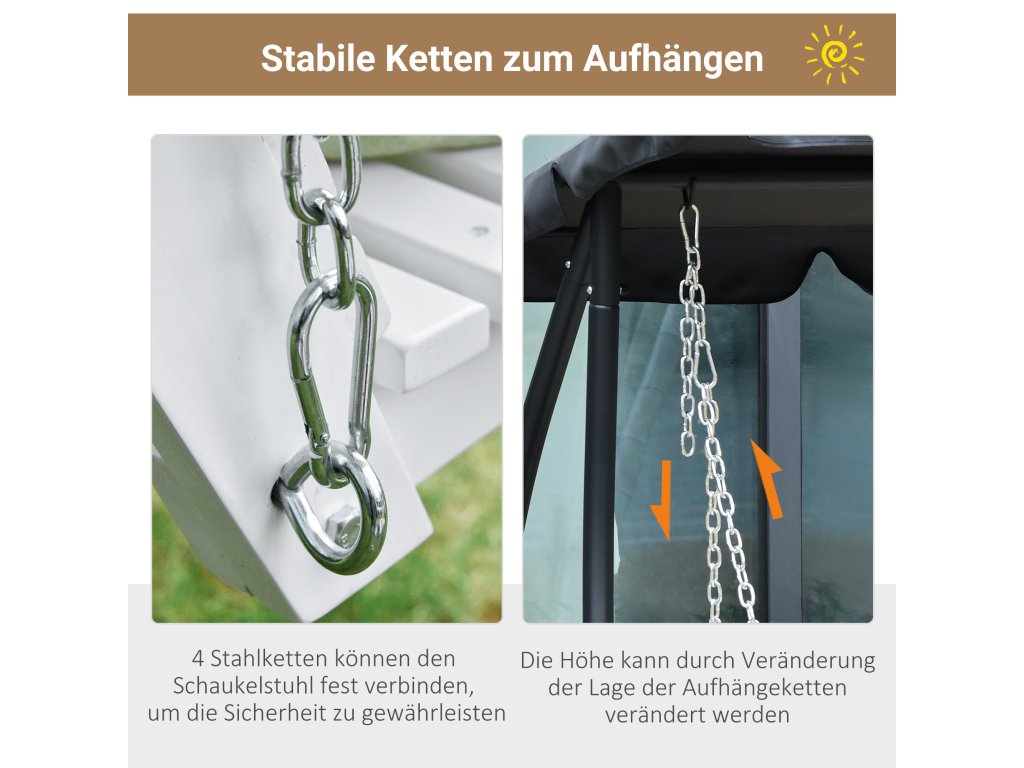 - STABILNÍ ŘETĚZY: Ocelový držák řetězu poskytuje silnou oporu a zajišťuje bezpečné houpání. Široké područky a velkorysé opěradlo vám umožní pohodlné čtení a odpočinek. Užijte si klid a pohodu a dodejte svému venkovnímu prostoru nádech noblesy s touto houpací lavicí.