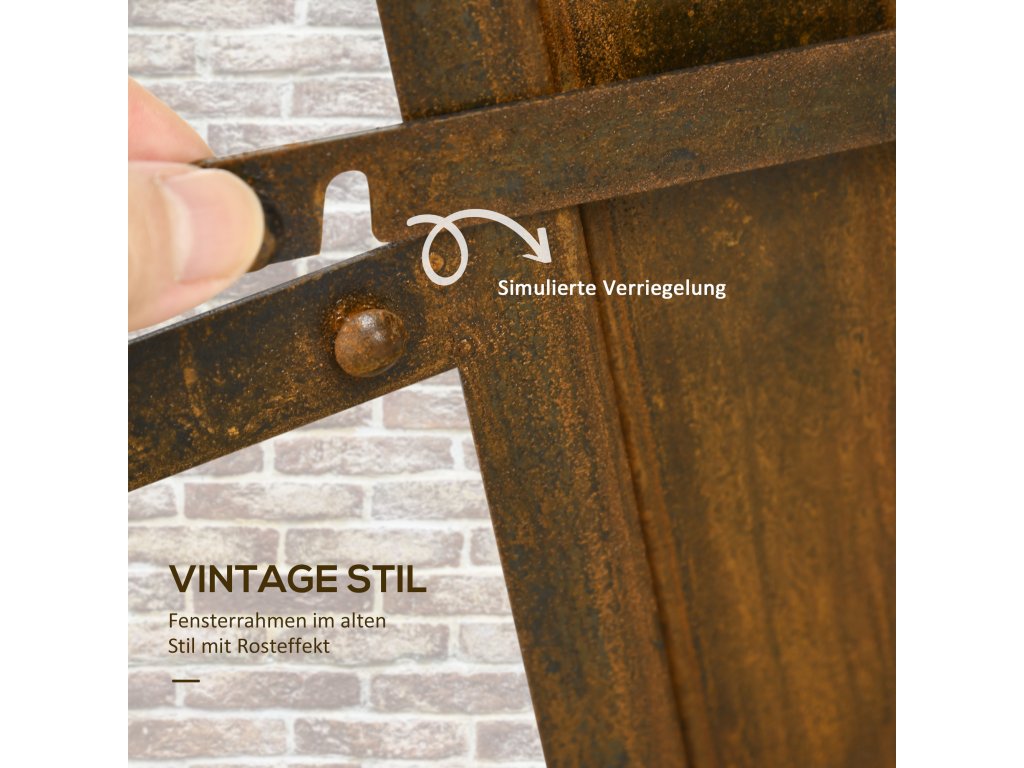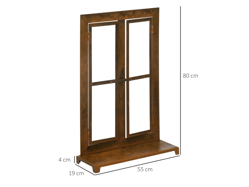 Outsunny železné okno nerezové křídlo okno 55x80cm s parapetem a nadsvětlíkem rustikálně hnědé pro zahradní dekorace | Aosom.de