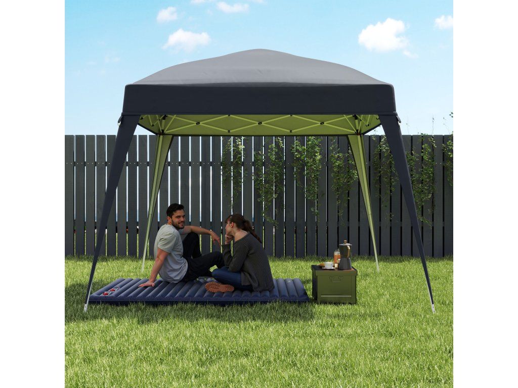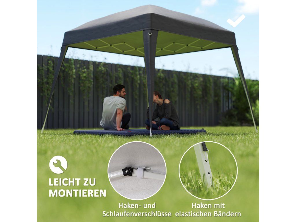 - Einfacher Aufbau: Die Dachbefestigung des Pavillondachs erfolgt sicher durch Klettverschlüsse am Rahmen, während Haken mit elastischen Bändern an den Pavillonbeinen angebracht werden. Zwei Personen können den Aufbau in nur 5 Minuten bewerkstelligen