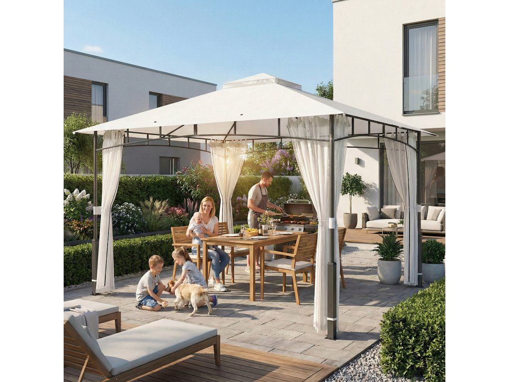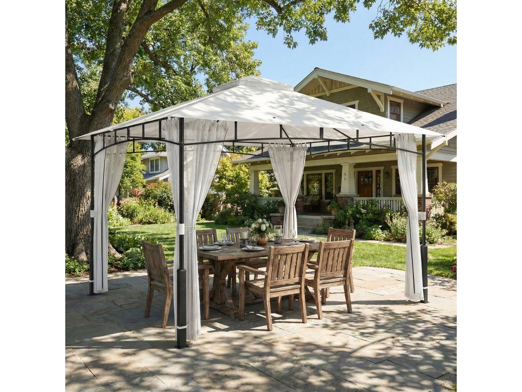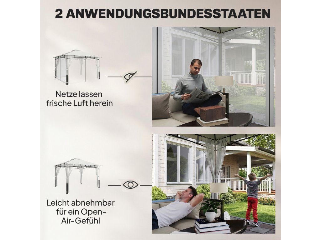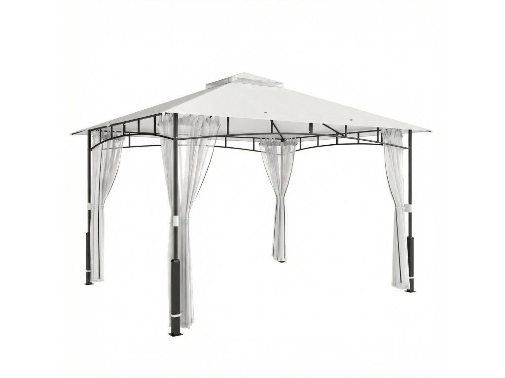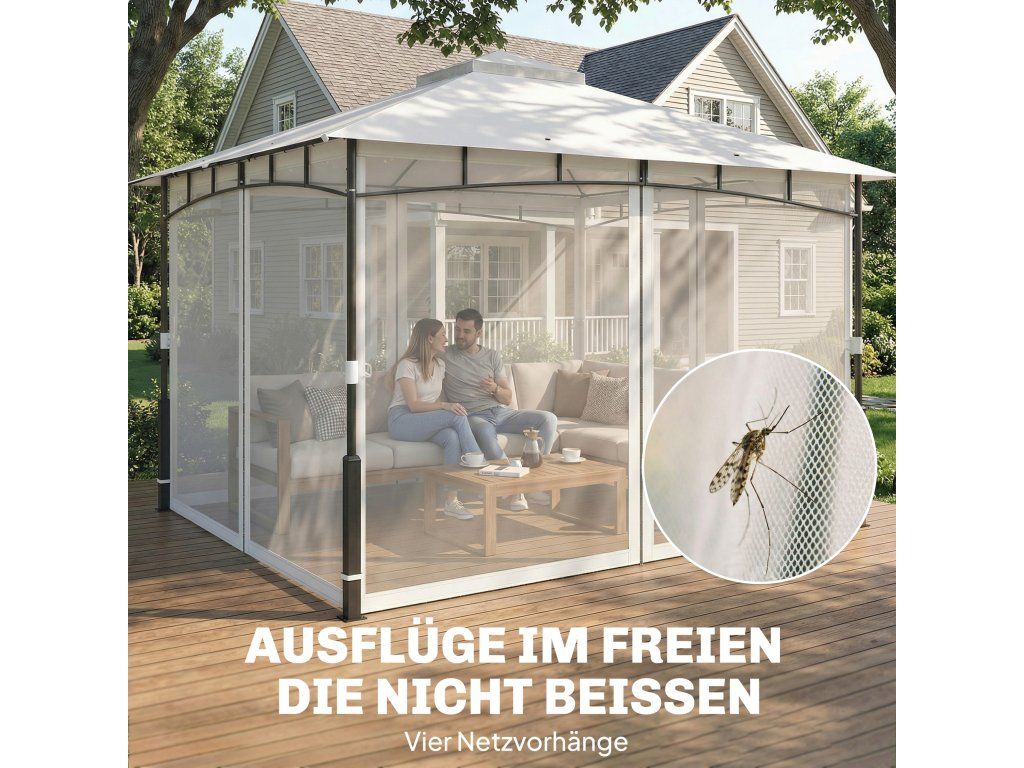 Pavilon, 3x3,6 m vodoodpudivý Stabilní zahradní pavilon s moskytiérou, dvojitá střecha, pro zahradu, terasu, černý