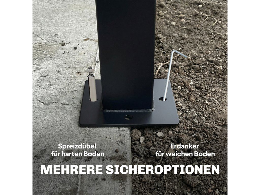- ✔ Součástí balení jsou zemní kotvy a rozpěrné šrouby pro bezpečnou instalaci na trávu nebo beton