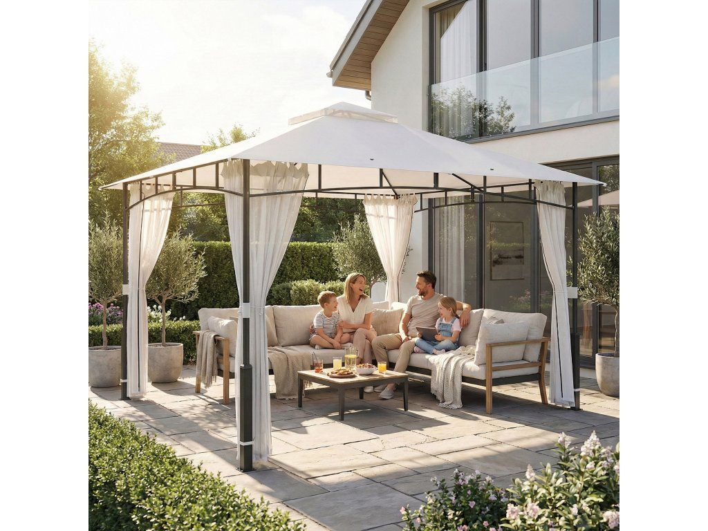- Prostorný pro společenská setkání: Díky velkorysým rozměrům 3 x 3,6 metru nabízí tento altán dostatek prostoru až pro osm osob. Ideální pro rodinné grilování, setkání s přáteli nebo relaxační hodiny u bazénu.