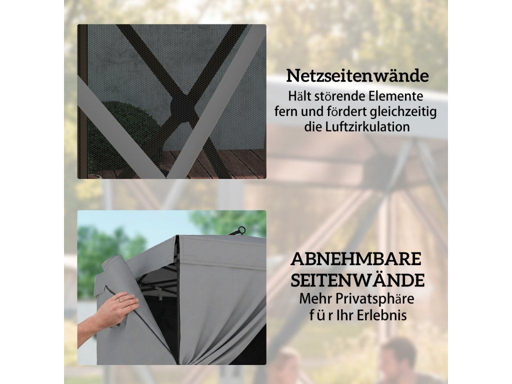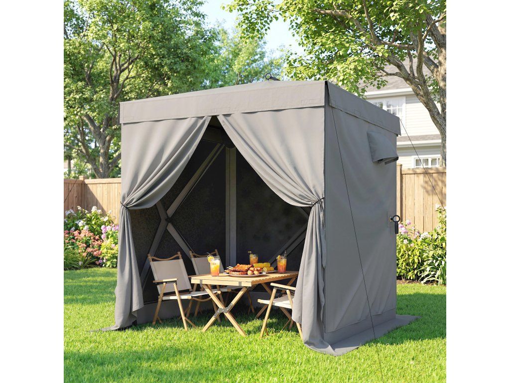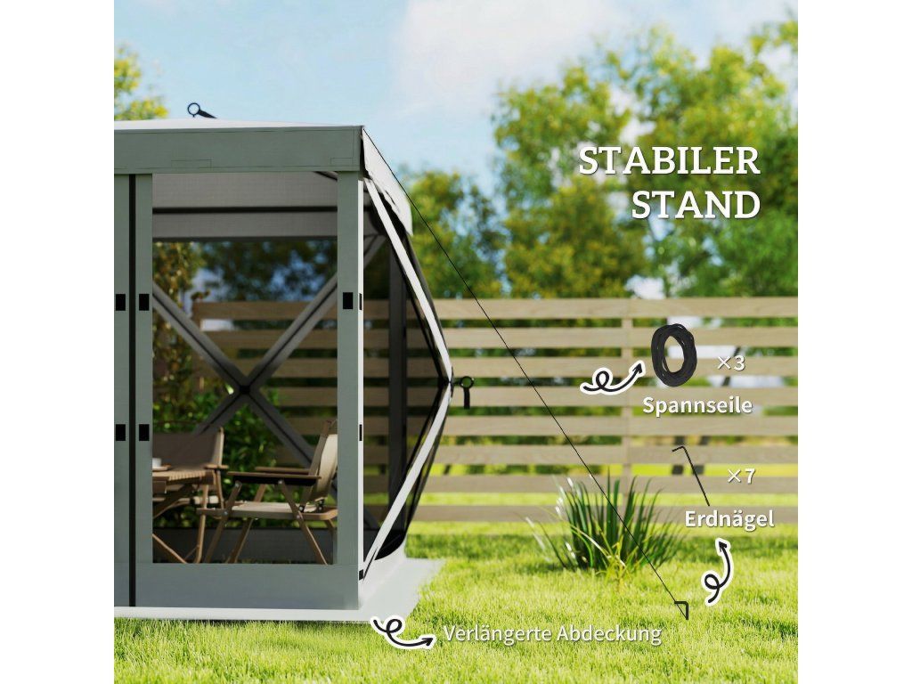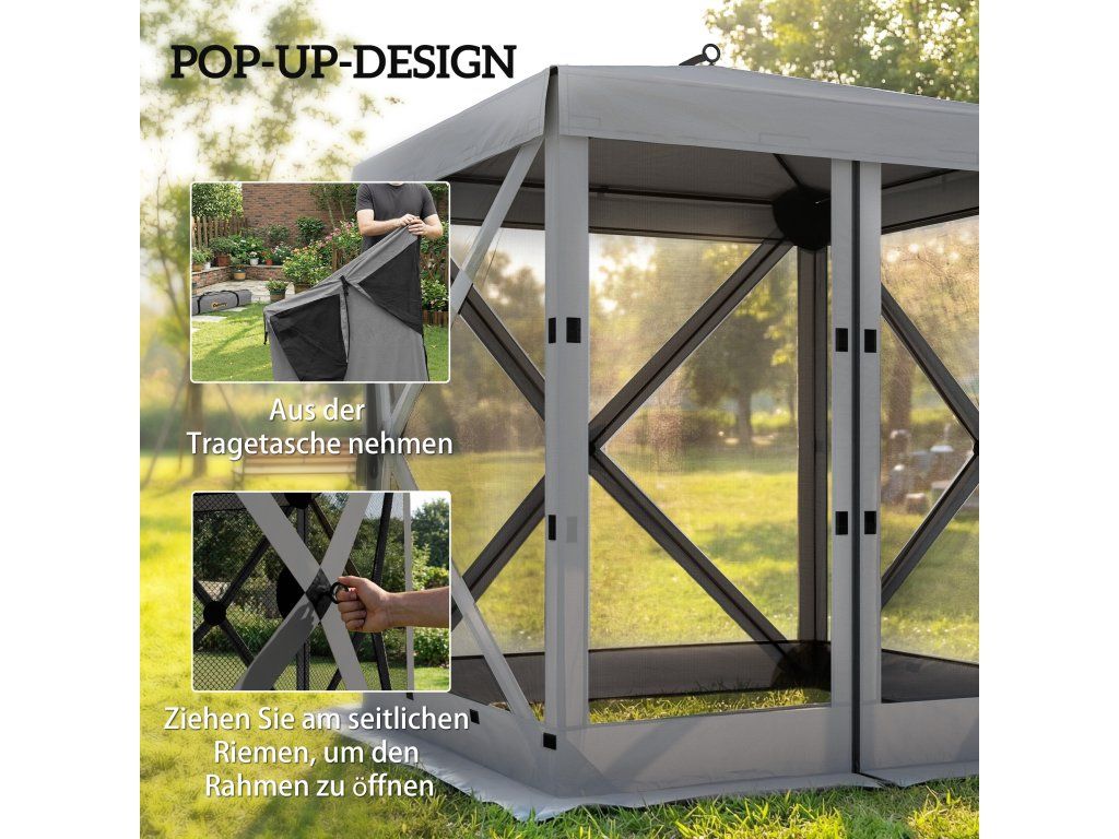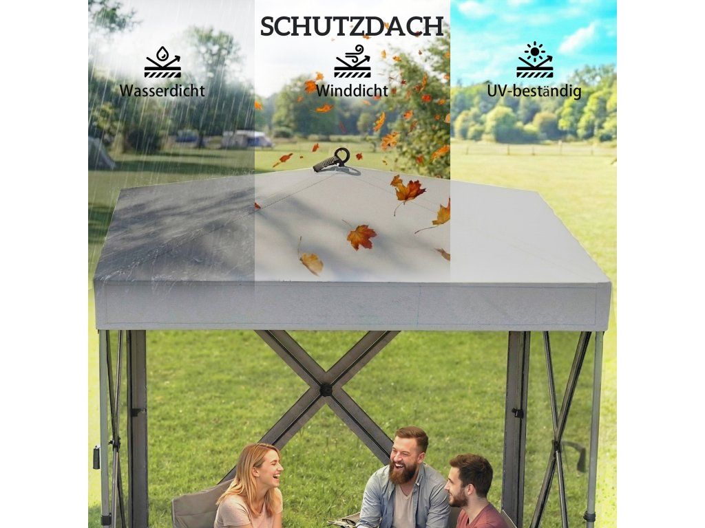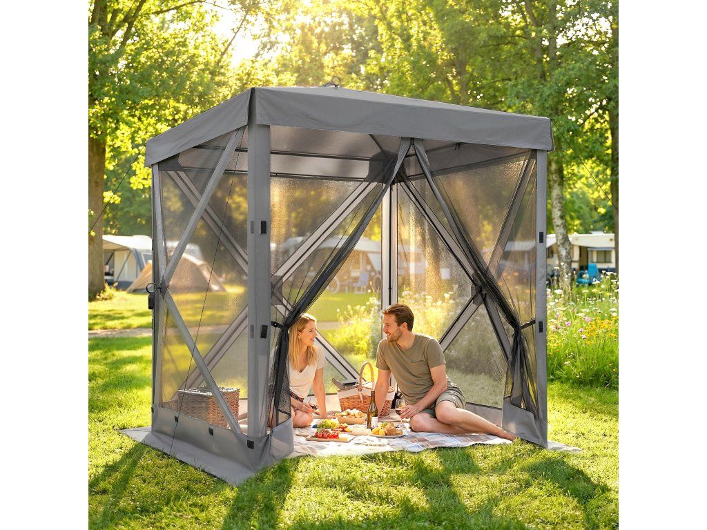 Objevte svobodu venku se zahradním altánem [NÁZEV ZNAČKY]! Tento kempinkový altán lze rychle postavit a díky vodotěsnému a UV30+ odolnému krytu poskytuje okamžitý přístřešek. Je vybaven čtyřmi bočními stěnami ze síťoviny a představuje skvělý zahradní přístřešek, který zajišťuje větrání a zabraňuje vstupu nežádoucích hostů. Ať už kempujete nebo jste na zahradě, tento venkovní altán nabízí pohodlí a soukromí.