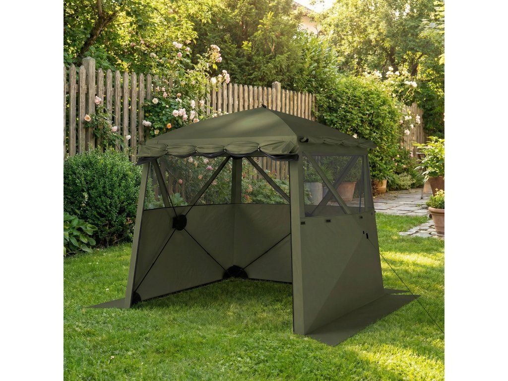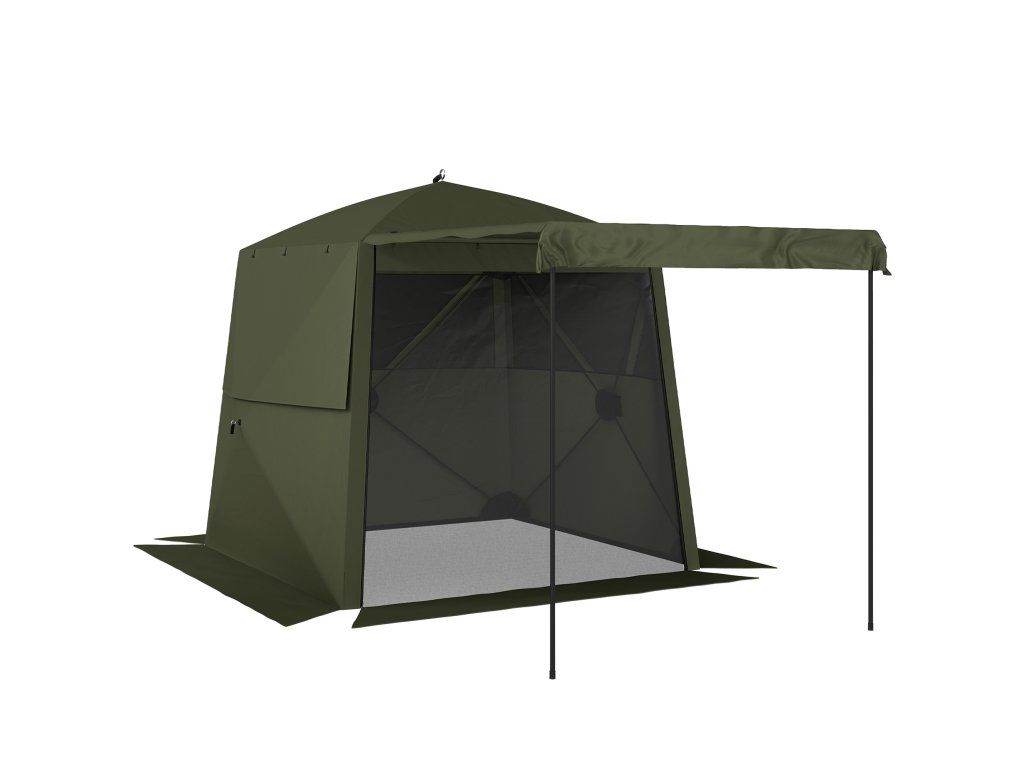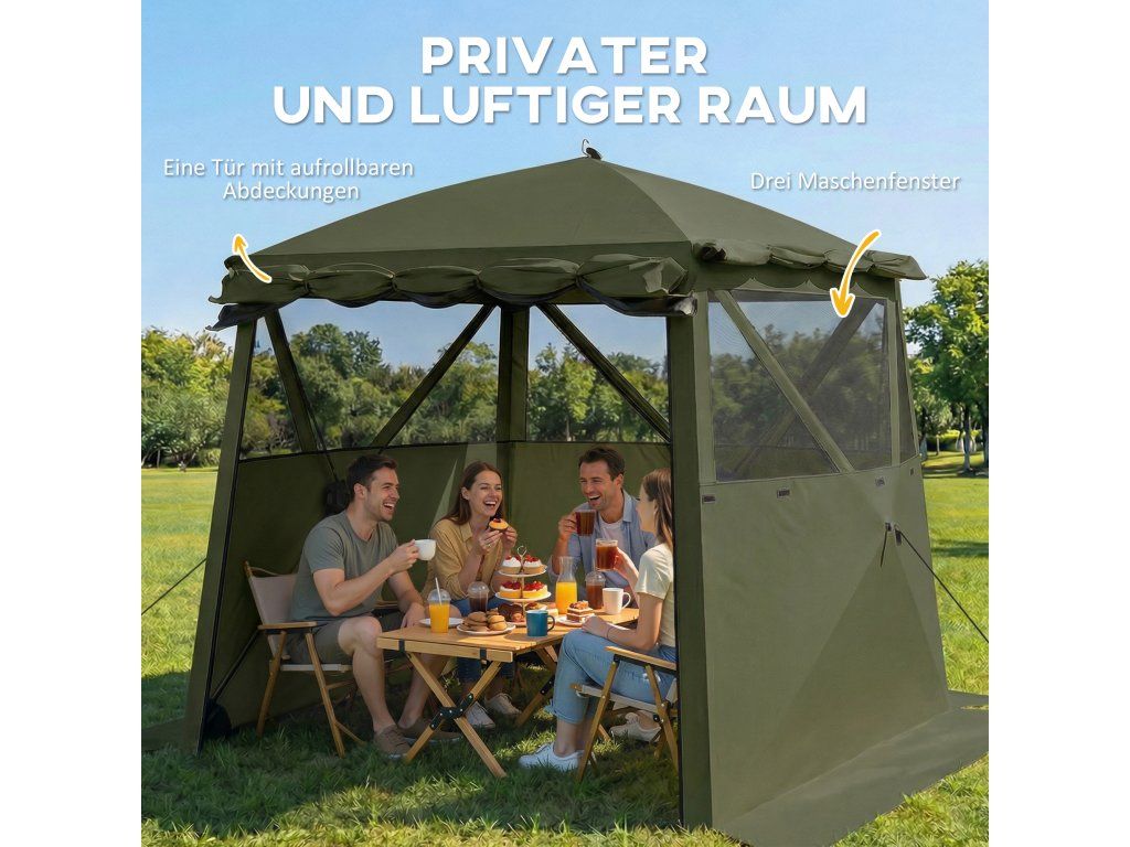 - Soukromý, vzdušný prostor: Pavilon pro 3-4 osoby se třemi okny ze síťoviny a rolovacími dveřmi nabízí buď příjemné větrání, nebo úplné soukromí.