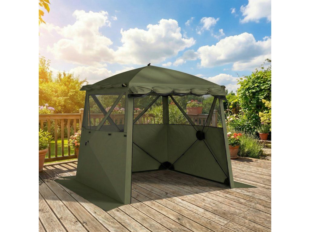 - ✔ Vysouvací konstrukce altánu umožňuje rychlou montáž a demontáž bez námahy