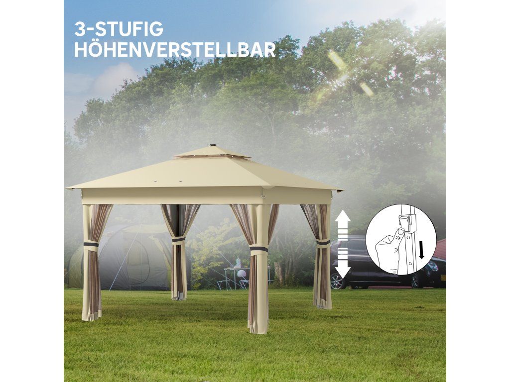 - Výškově nastavitelný: Třístupňově nastavitelný kovový rám skládacího altánu nabízí individuální možnosti nastavení výšky, což uživatelům umožňuje pohodlí a přizpůsobivost.