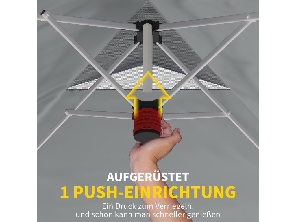 - Montáž bez námahy: Skládací altán o rozměrech 3 x 3 m postaví dvě osoby během 30 minut bez použití nářadí díky vyskakovací konstrukci a uzavírání v jednom kroku - úspora času při rychlých venkovních aktivitách.