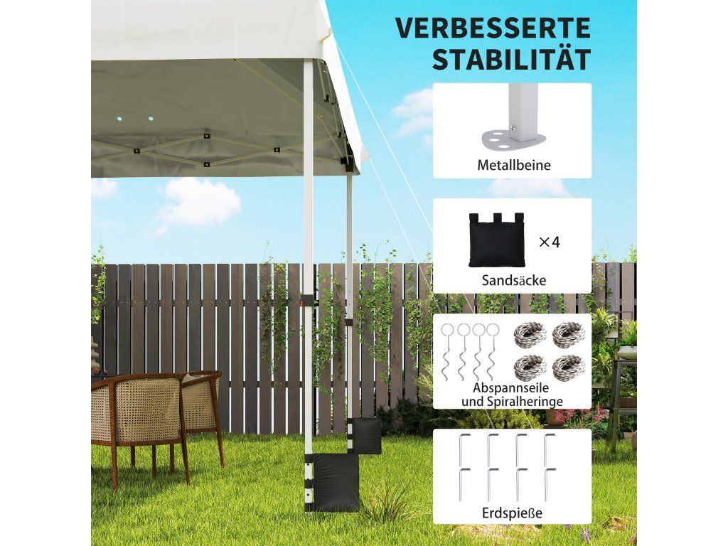 - Kompletní sada pro zajištění stability: Kovový rám s práškovým nástřikem, osm kotev do země, čtyři spirálové kotvy, napínací lana, pytle s pískem - váš pop-up altán zůstane stabilní při síle větru 4-6.
