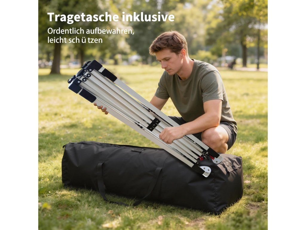 - Vestavěná kolečka: Kolečka skládacího rámu usnadňují jeho přemisťování. Sklopená kolečka altán stabilizují. Přenosná taška chrání a usnadňuje úhledné skladování vyskakovacího altánu.