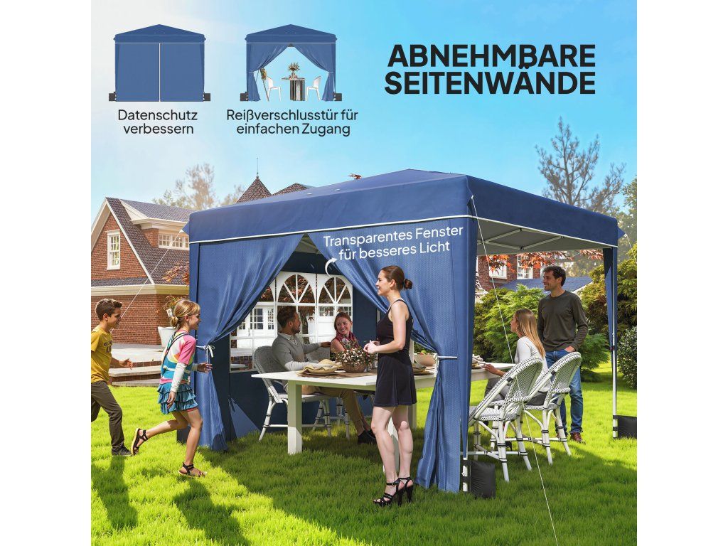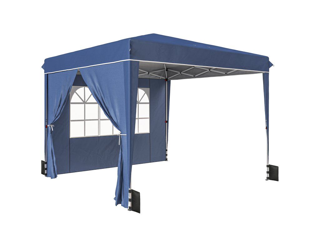 Pavilon 3 x3 m Voděodolný výškově nastavitelný skládací pavilon Pop-up se 2 bočními panely, skládací UV 50+ Tmavě modrá barva