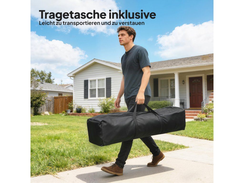 - Pop-up konstrukce: Díky pop-up konstrukci lze pavilon postavit a sundat během 30 minut bez použití nářadí. Skládací konstrukce a úložná taška usnadňují skladování, když se nepoužívá.