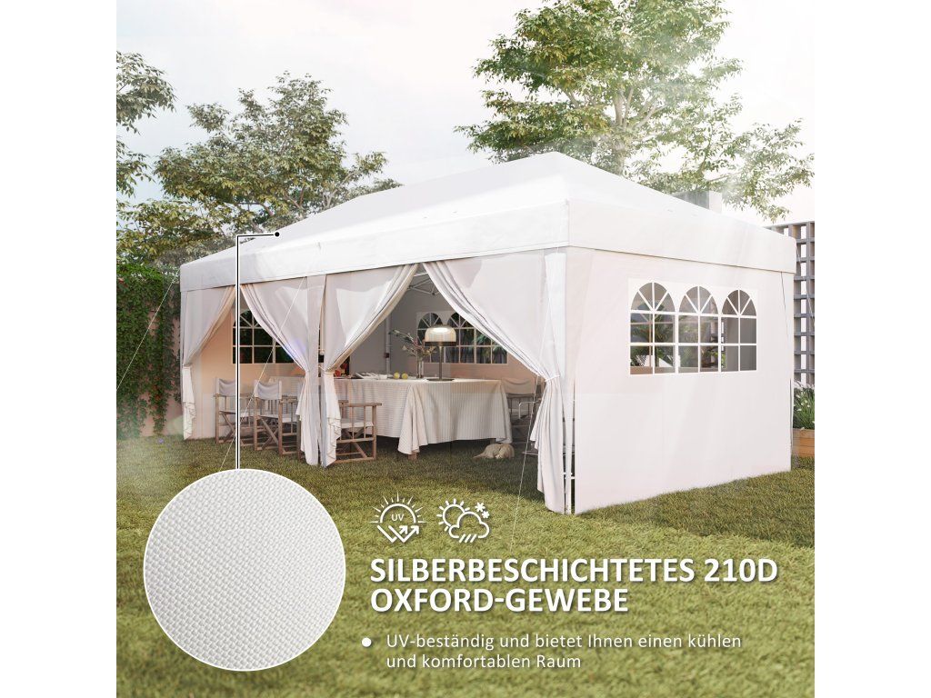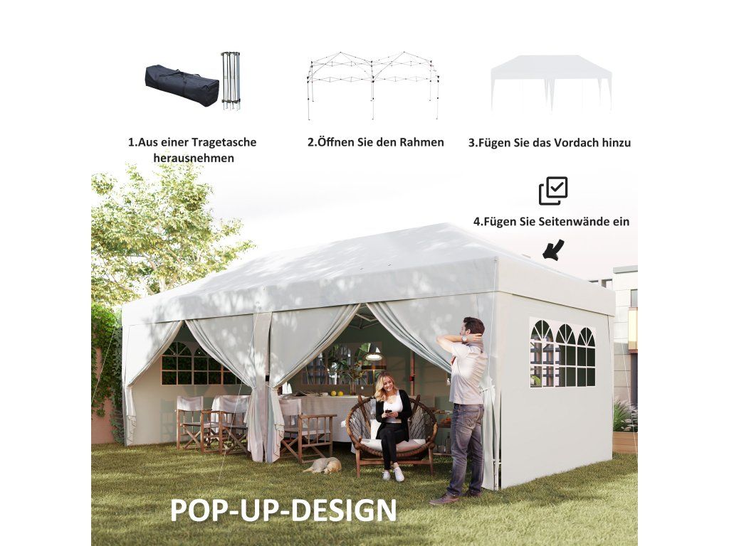 - Vysouvací pavilon s bočními stěnami: 590 x 295 cm, 6 odnímatelných bočních stěn, snadné sestavení ve dvojici, ideální pro trhy/venkovní akce, včetně přenosné tašky pro snadné skladování.