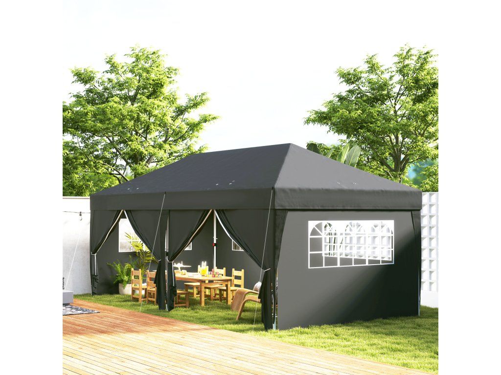 Tento přenosný a skládací altán je ideální pro venkovní akce a nabízí rychlé sestavení. Má odnímatelné boční stěny pro nastavení prostoru, přenosnou tašku pro snadnou přepravu, ochranu proti UV záření a odolnost proti větru a vodě. Rychle se sestavuje a je odolný.