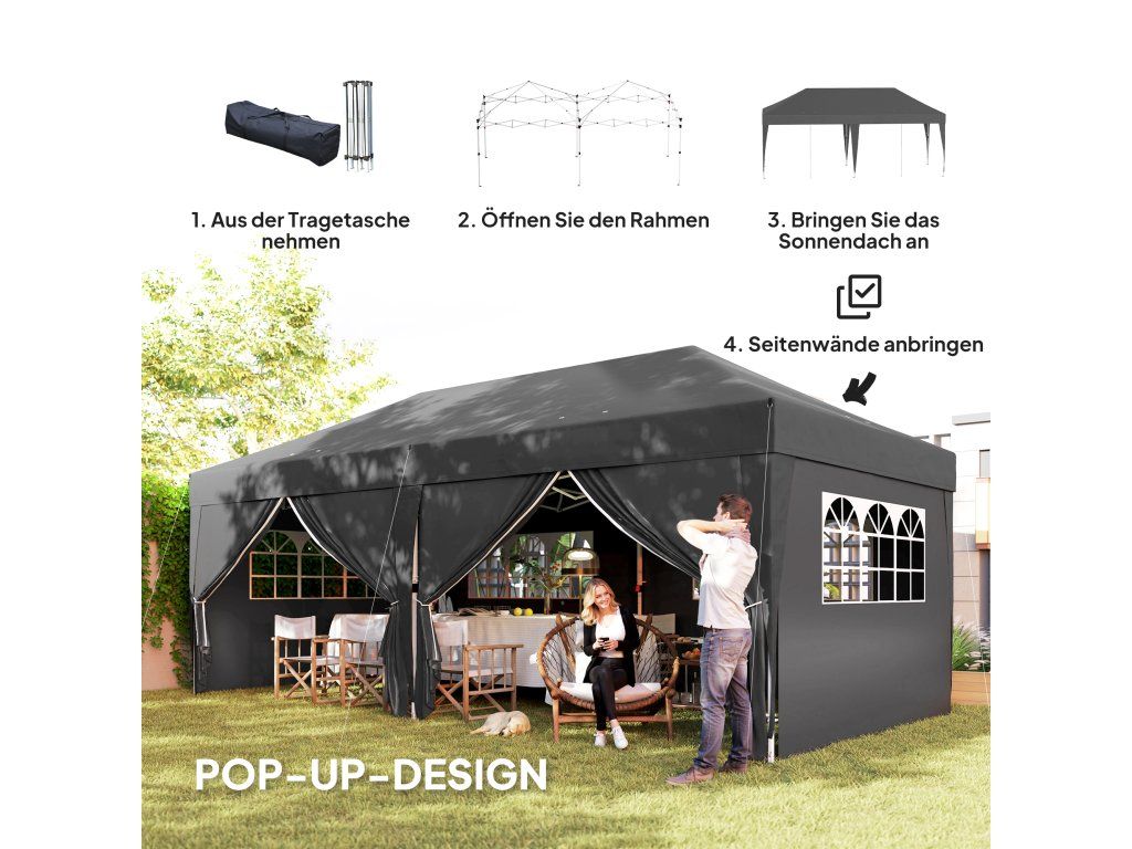 - ✔ Přijímací stan o rozměrech 590 x 295 cm se 6 odnímatelnými bočními stěnami, ideální pro venkovní akce, jako je grilování, bleší trhy atd.