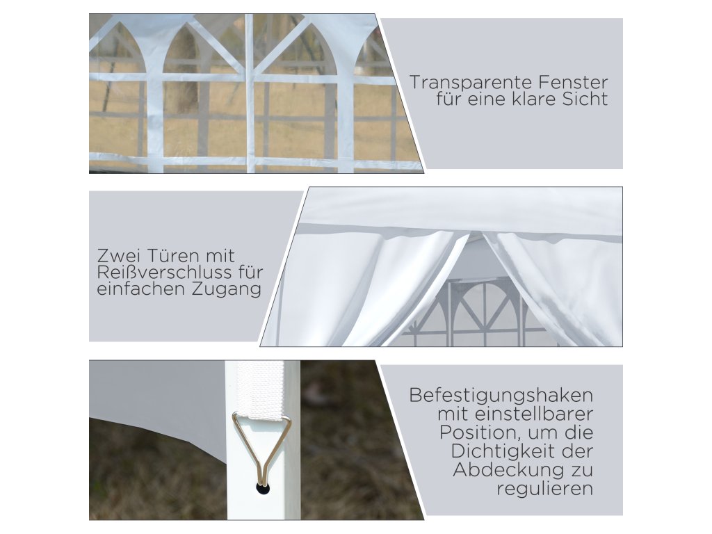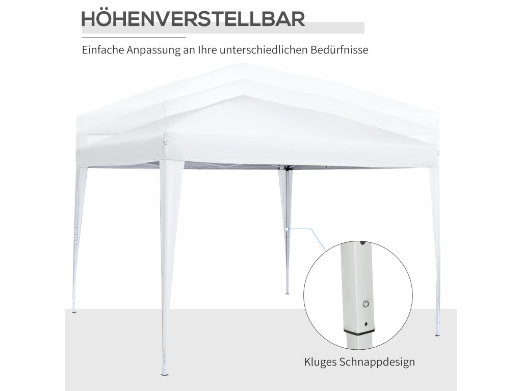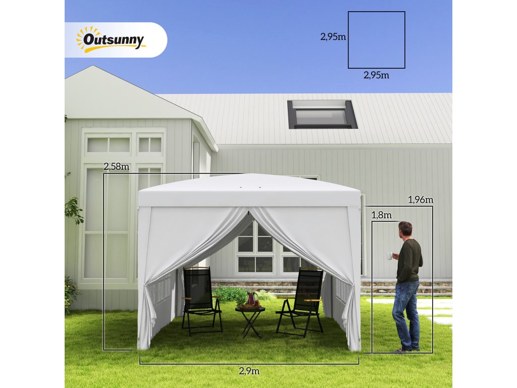 Tento kompaktní skládací altán Outsunny o rozměrech 2,95 x 2,95 m představuje ideální, snadno postavitelný přístřešek. Ideální pro rodinné oslavy, svatby, pikniky, sportovní akce, staveniště a kempování. Párty stan lze postavit nebo sundat během chvilky a má vysoce kvalitní ocelový rám s práškovým nástřikem, který nabízí vysokou stabilitu a je odolný i proti zimě.