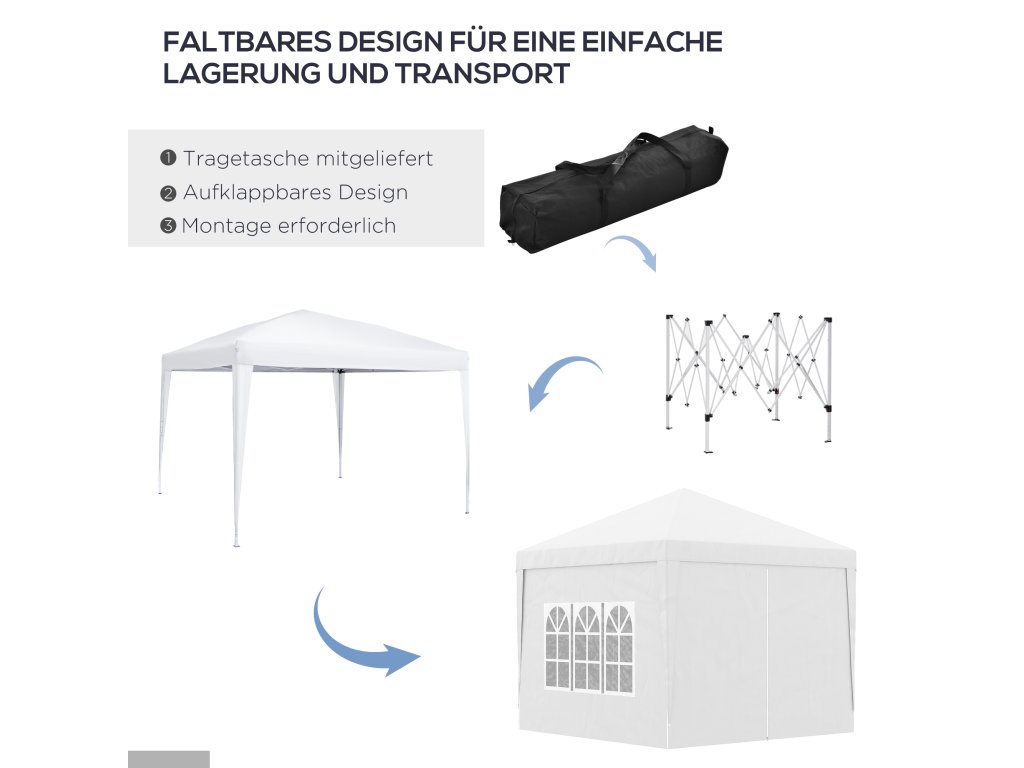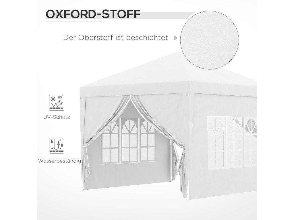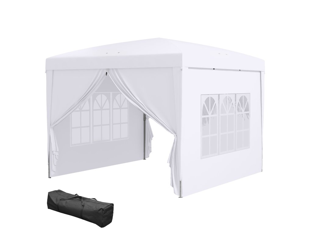 Pavilon HOMCOM 3x3 m se 4 bočními stěnami a okny, UV ochrana, včetně přenosné tašky, ocel a tkanina Oxford, bílá | šedá
