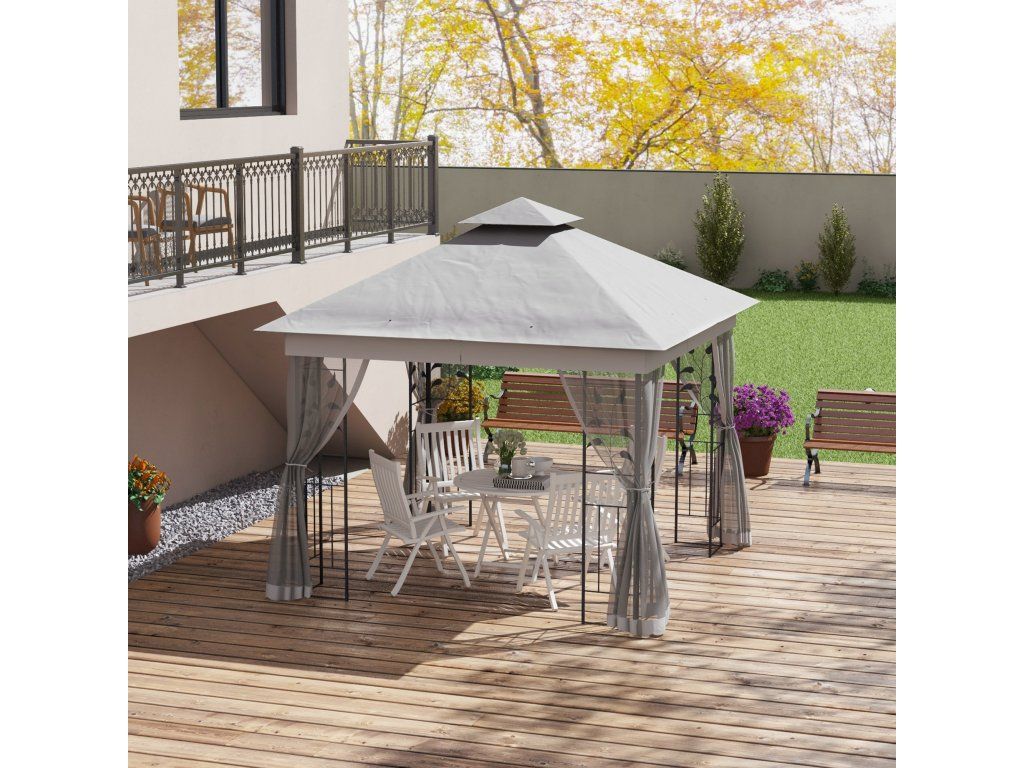 Pavilon s dvojitou střechou, 3x3 m Vodoodpudivý Stabilní Zimní zahradní pavilon s moskytiérou Světle šedý