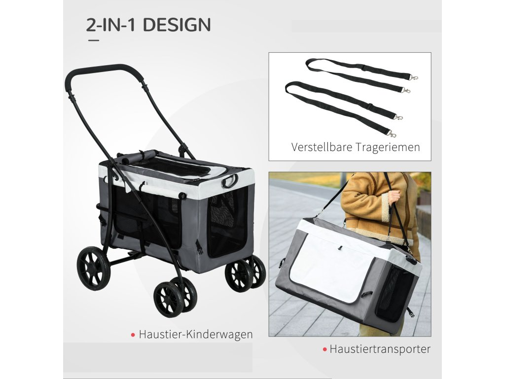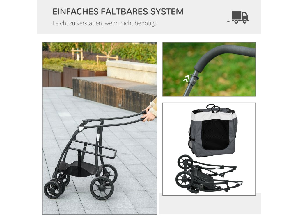 PawHut 2 v 1 kočárek pro psy, kočárek pro domácí mazlíčky, vozík pro psy s odnímatelným košíkem, 2 bezpečnostní vodítka, skládací kočárek pro malé/miniaturní psy| Aosom