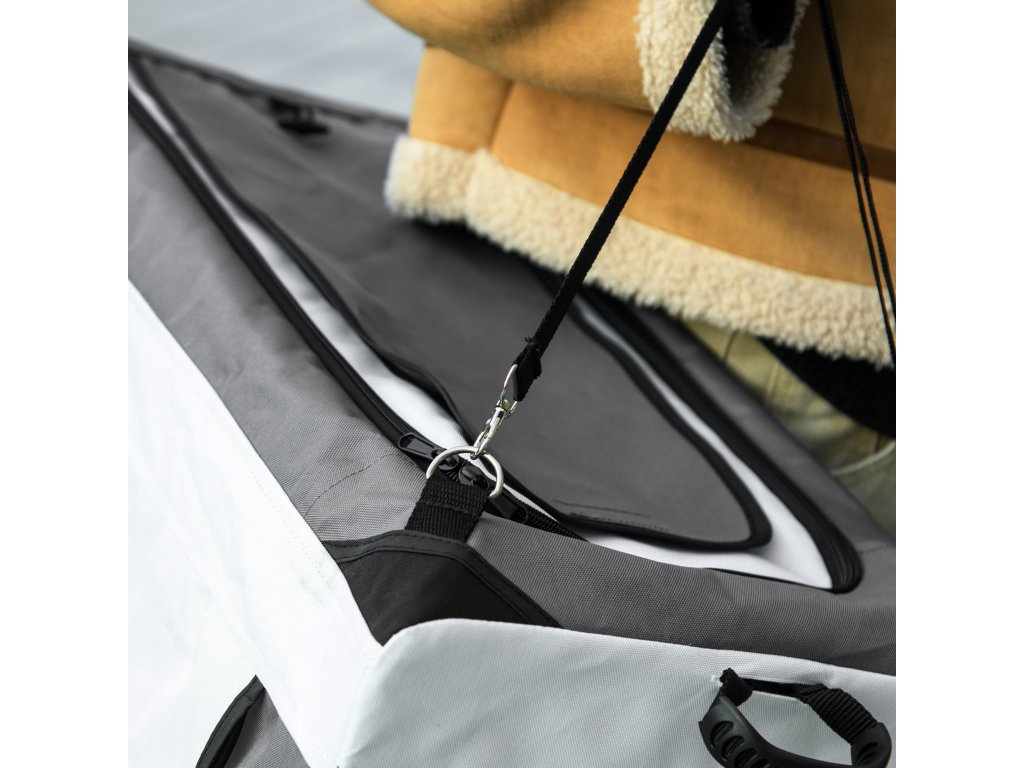 - Vyjímatelná přihrádka na přepravku pro psy: Všestranná konstrukce umožňuje vyjmout přihrádku a používat ji jako samostatnou přepravku pro zvířata, což poskytuje flexibilitu a pohodlí v různých situacích