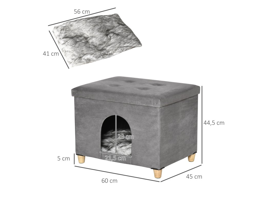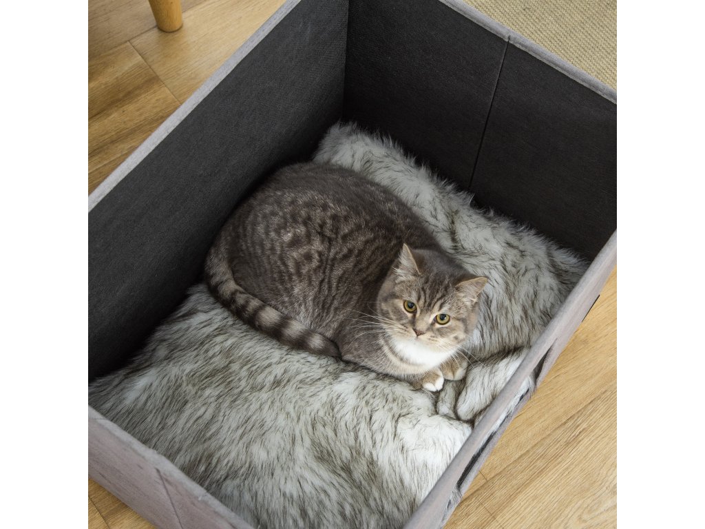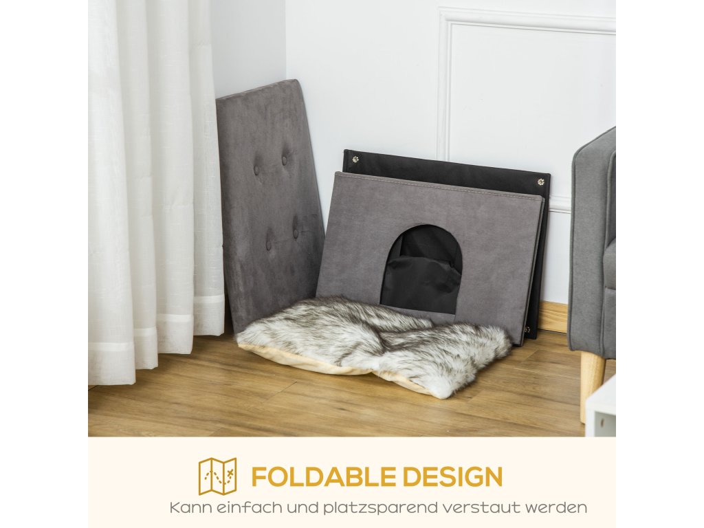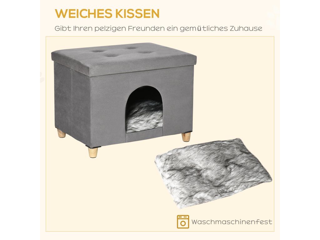 PawHut 2 v 1 kočičí jeskyně podnožka s polštářem polstrovaný koš pro kočky dřevěné nohy odnímatelný plyš šedý pro milovníky koček | Aosom.de