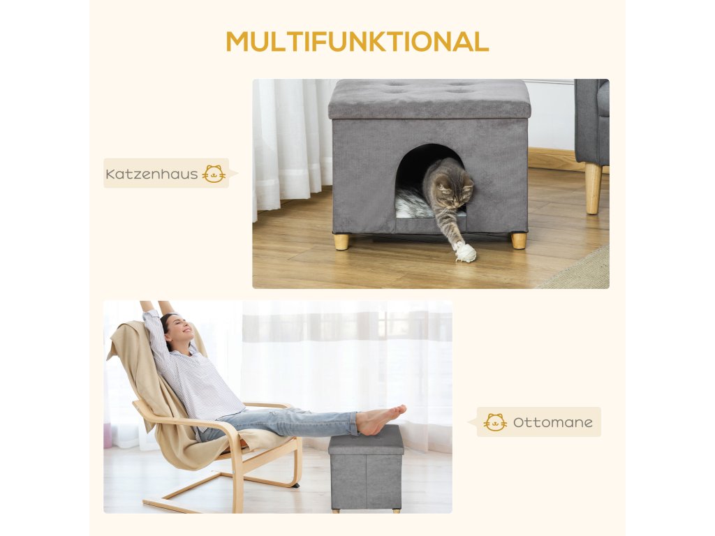 - ✔ Multifunkční: kočičí domeček a podnožka v jednom